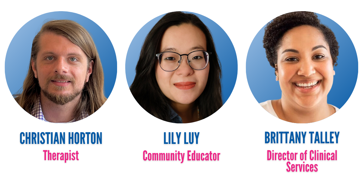 We're so excited to welcome Christian, Lily, and Brittany to the CAPA team! Christian is a recent intern and now a full-time therapist. Lily is our new Community Educator, which is an entirely new position here at CAPA. Brittany is our new Director of Clinical Services, so she'll be overseeing all of our therapists as well as our intern program. | |