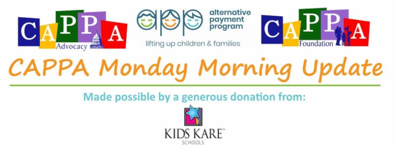 Our Monday Morning Update supports our Early Learning & Child Care field with timely information about what is going on in California and nationally; as well as dates to be aware and upcoming events.