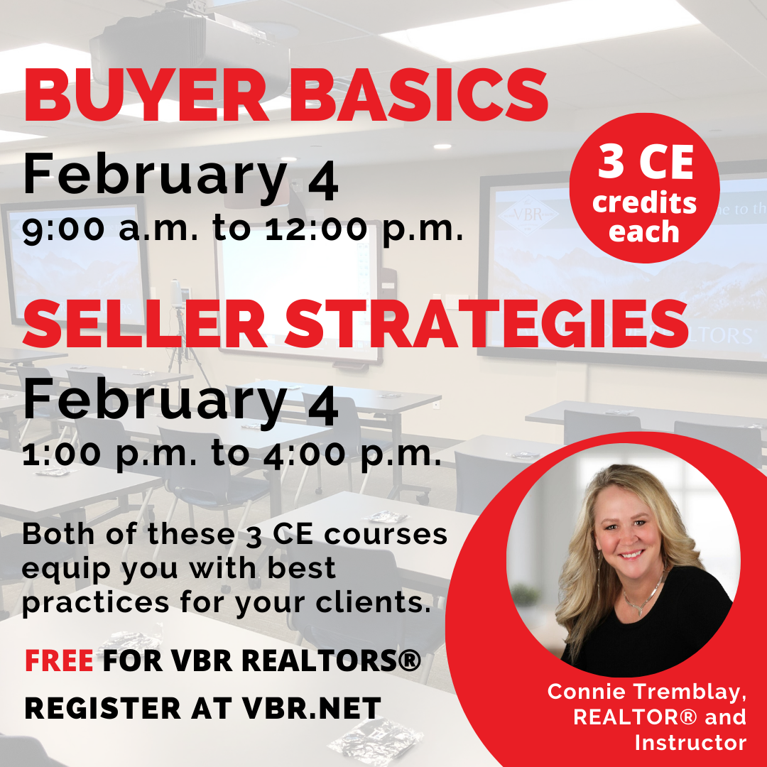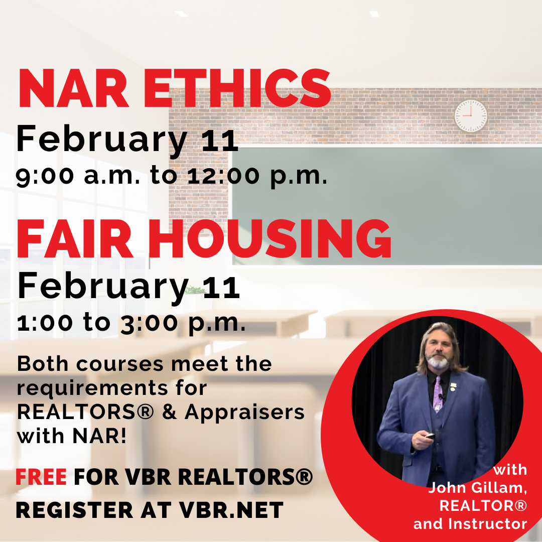 A few upcoming classes are listed below. You can also visit VBR's online calendar to see more classes and events. VBR-hosted education is free for our REALTOR® and Appraiser members.
