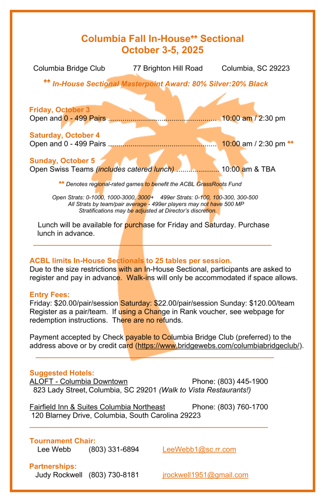 Space is limited - see the tournament webpage for registrations to date. Registration is not complete until payment is received.