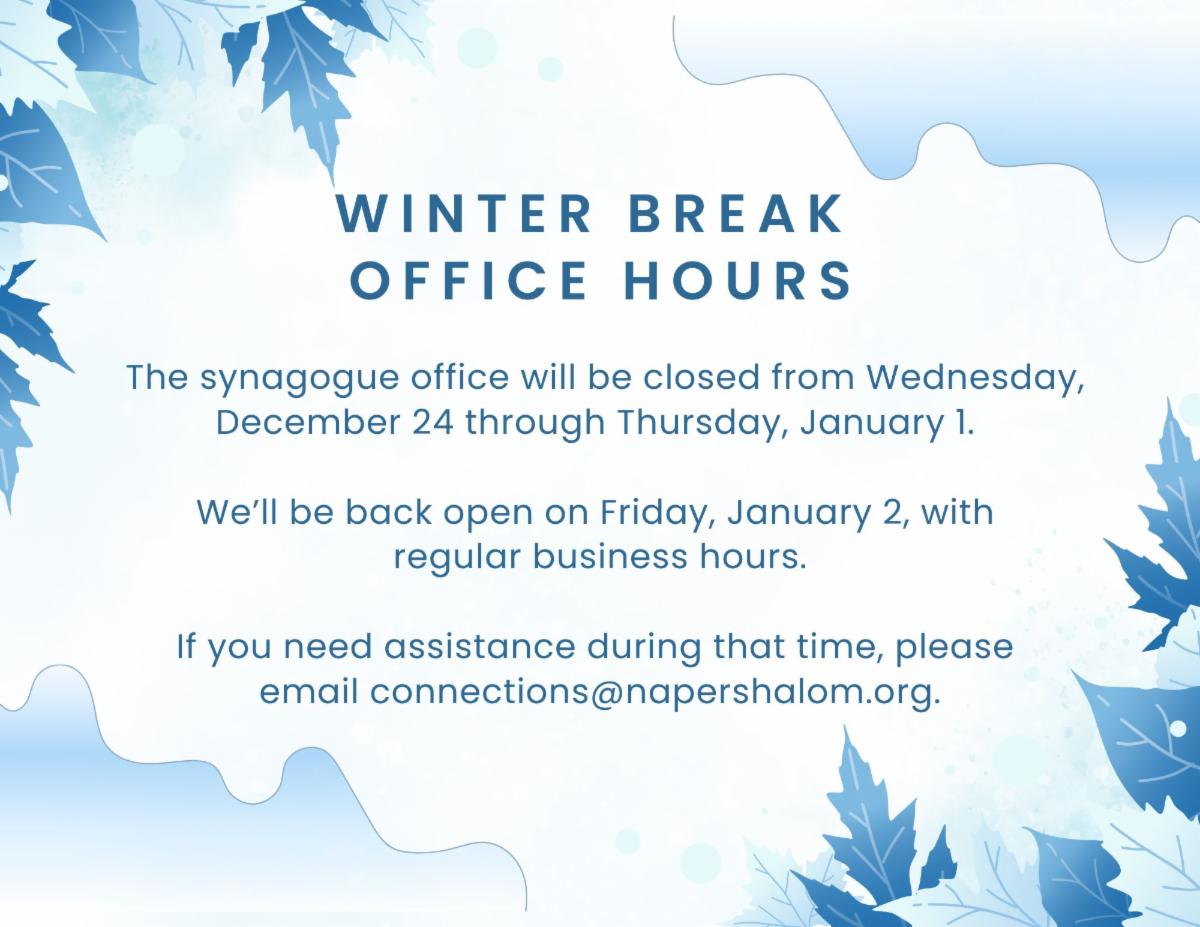 The Thursday Study Group with Rabbi David is currently on break and will resume on Thursday, January 8. Whether you can attend regularly or just drop in from time to time, we invite you to join us for energizing discussions and the joy of learning together. Join us at the synagogue in the social hall