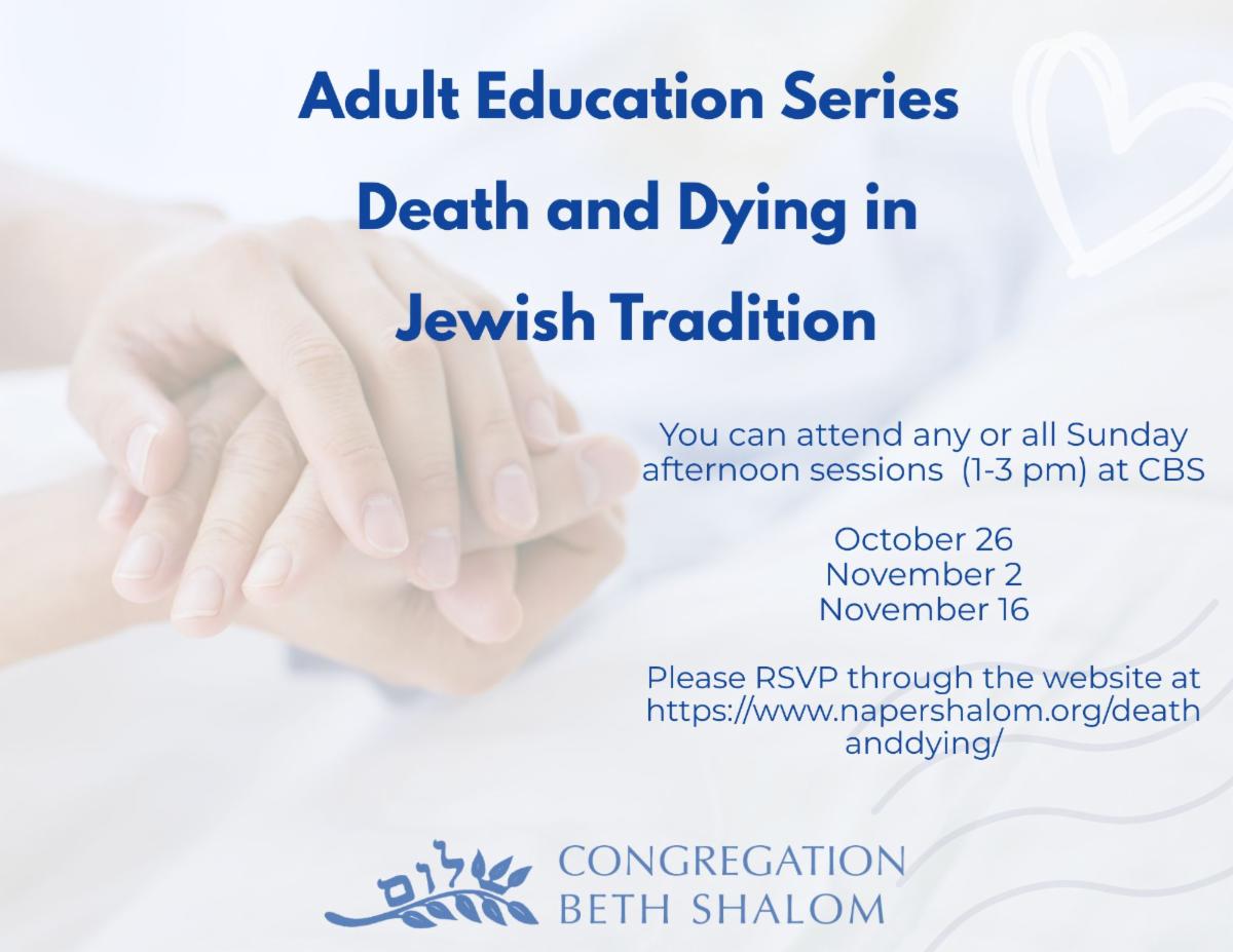 The third session will be led by Cantor Julie Yugend-Green (Emerita) and will be a workshop on how to perform taharah (meaning “purification,” and is the ritual washing and dressing of the deceased).