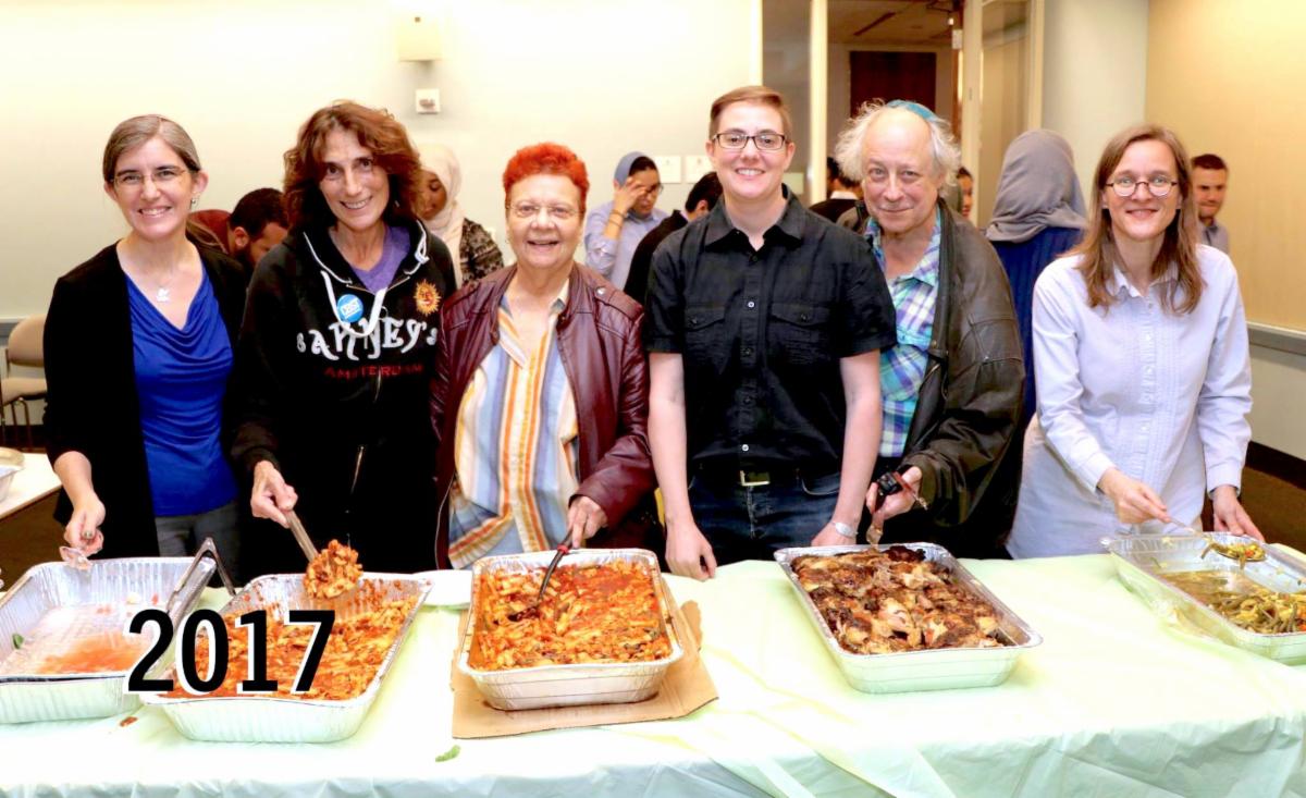 📷: House of Peace volunteers serving dinner at an ICNYU iftar in 2017. Photo credit Harold Levine.