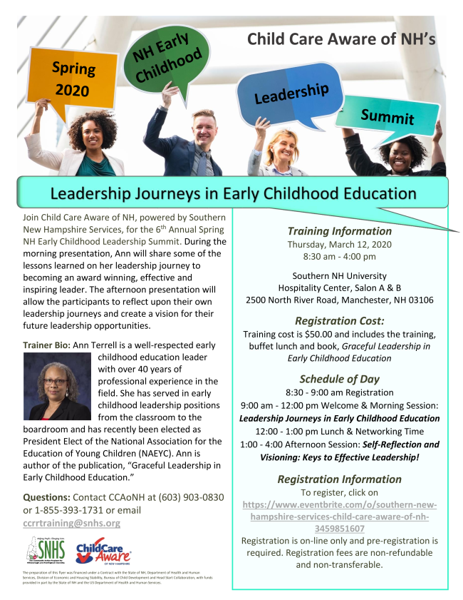 Spring NH Early Childhood Leadership Summit is coming on Thursday, March 12, 2020. Ann Terrell will be joining us as, she speaks about