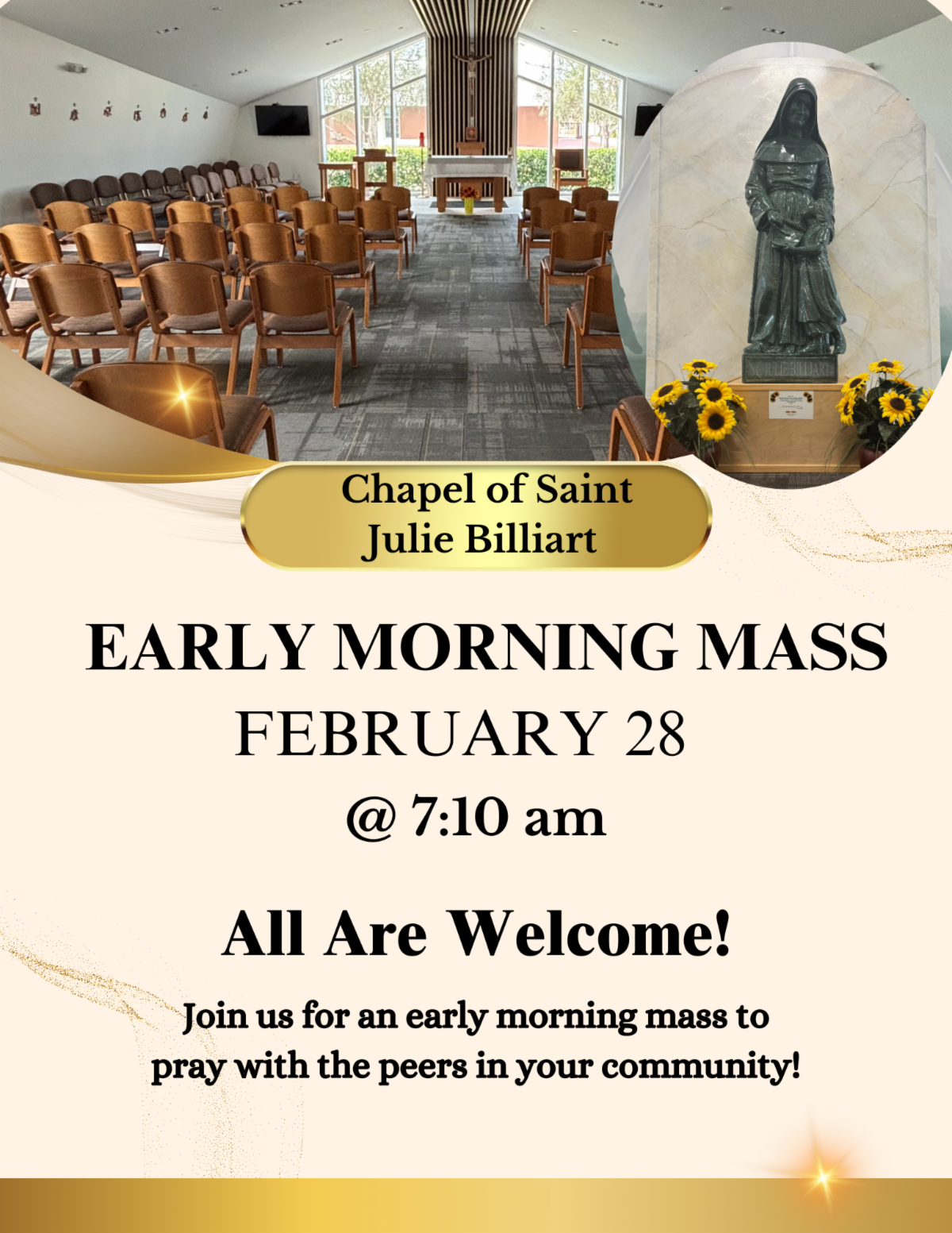 Come, join other Pilgrims of Hope this Jubilee Year of 2025 by Seeking, Sharing and Finding Jesus Christ amongst us in the Word of God in the Chapel of St. Julie Billiart.