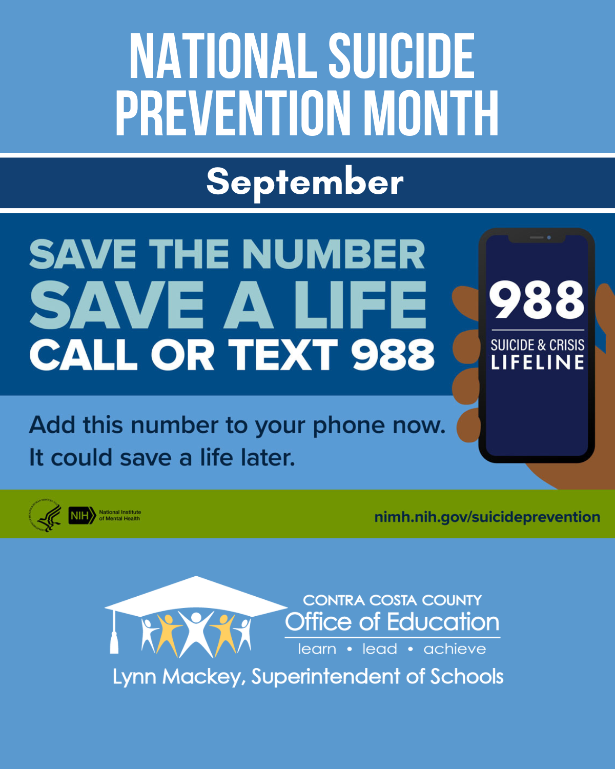 The “Never a Bother” youth suicide prevention campaign supports suicide prevention efforts at your school by preparing students to recognize warning signs of suicide and how they can support themselves or a friend before, during, and after a crisis. Engage caregivers as partners in suicide prevention by sharing information about the warning signs, crisis resources, and the importance of reminding youth that they are never a bother. Visit the Never a Bother Toolkit web page to download free digital resources, which include a campaign activation toolkit exclusively for education partners.
