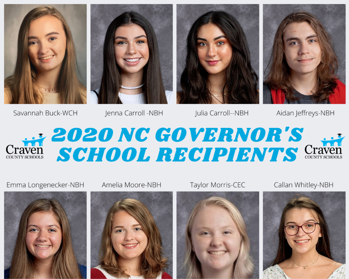 Craven County Schools is very proud of our eight students selected to attend this year's NC Governor's School Session. Unfortunately last week The Exceptional Children Division and its Office of the North Carolina Governorโs School informed us of the cancellation of the 2020 session of Governorโs School, as approved by the North Carolina State Board of Education, due to the COVID-19 pandemic. Even with considered accommodations and date adjustments, proceeding with this close-knit residential program would improperly jeopardize student and faculty/staff health and safety during this period of necessary social distancing. Also, in-depth considerations have revealed that other content delivery means (e.g., online, videoconference, etc.) would sacrifice program integrity and equity, offering inconsistent or no additional benefit to most students.