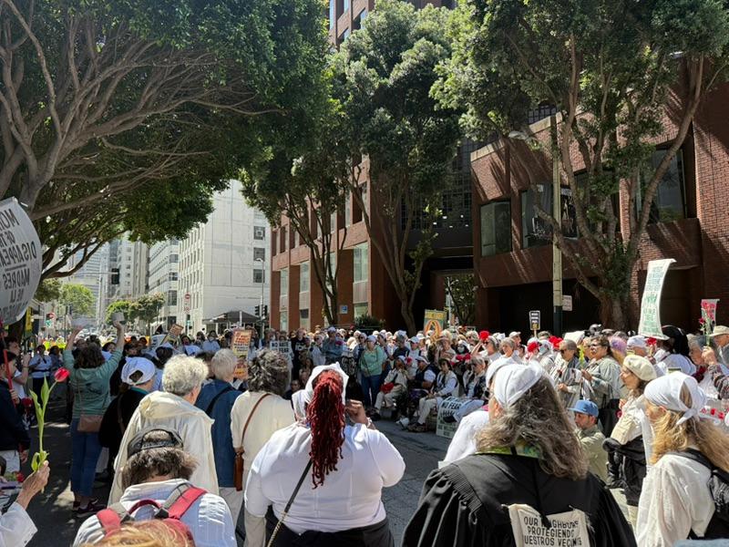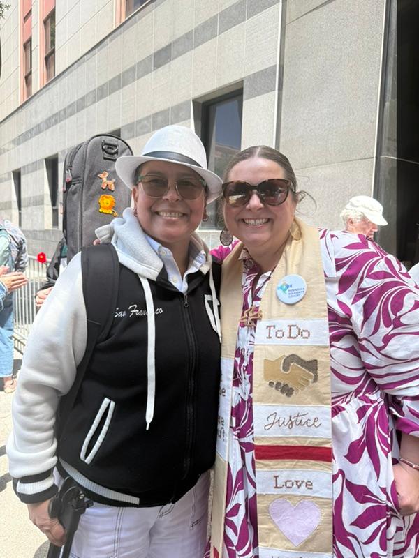 | | A good time was had by all at the San Jose Giants game last Friday night! | | Rev. Jessica and Rosa Los Santos joined other faith leaders from across the Bay for a prayer vigil outside the ICE offices in San Francisco. Rosa led the group in powerful and prayerful song. | | |