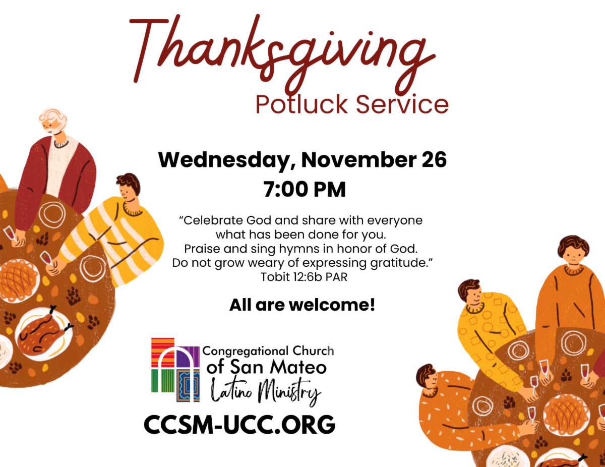 We’re excited to celebrate our special bilingual Thanksgiving Potluck Service on Wednesday, November 26, at 7:00 pm in Kloss Hall. This will be a beautiful opportunity for our church family to come together and express gratitude for another year of blessings.