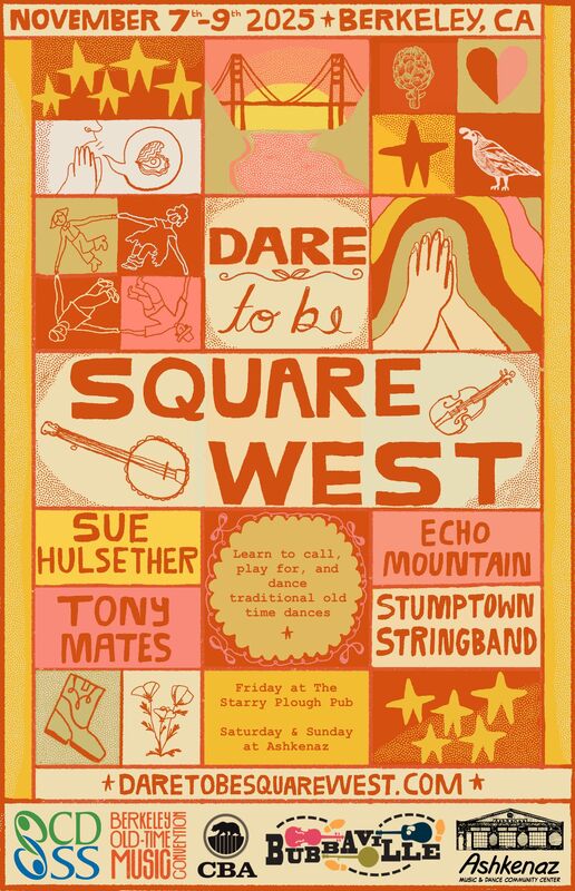 Dare To Be Square West (November 7-9, Berkeley, CA) is a weekend of square dance and music workshops, dancing, jamming, and fun, focused on promoting and preserving traditional square dancing.