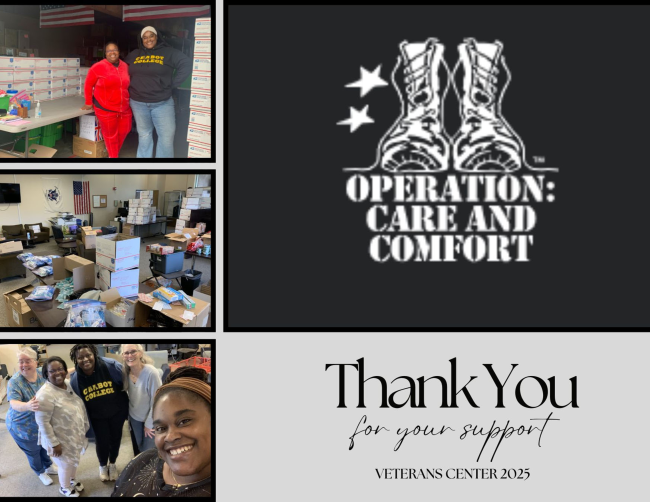 This Spring, Chabot's Veterans Resource Center collected and assembled supplies for care packages that were sent to Operation: Care and Comfort to be delivered to our soldiers overseas. Thank you to everyone who donated funds, items, and, most importantly, time to create the care packages.