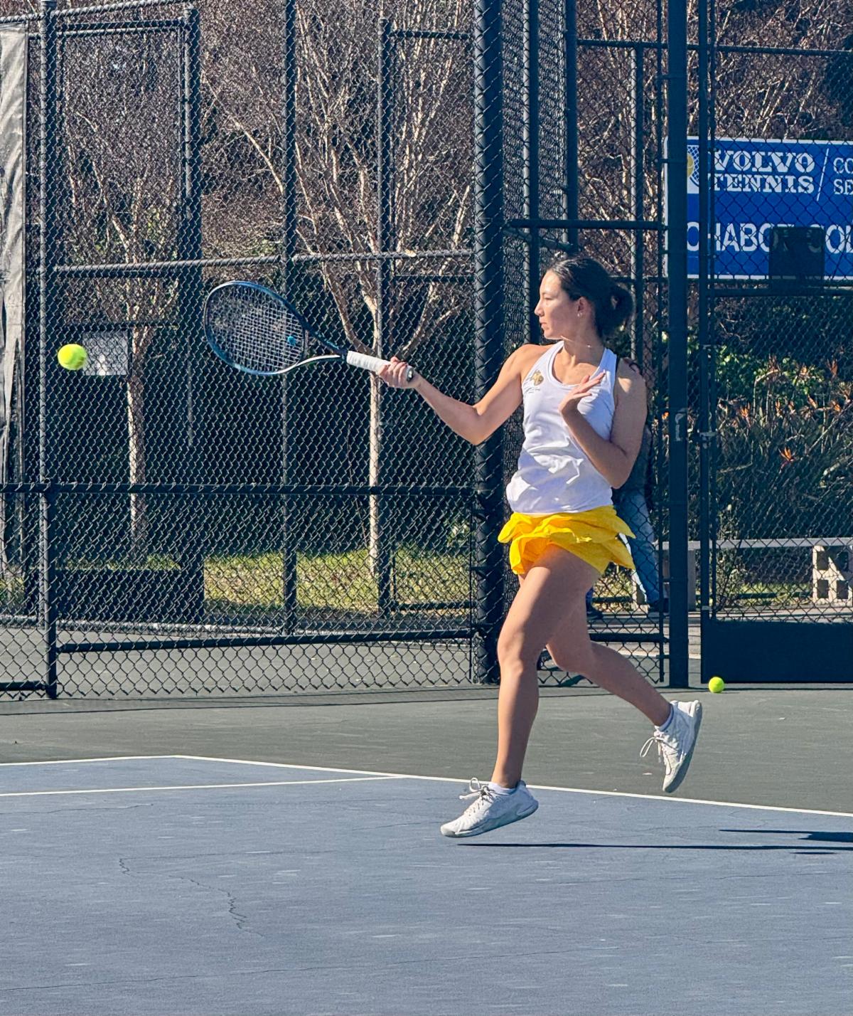 Mina Koloski rolled through the 2025 Coast Conference Championships, capturing both the Single & Doubles Titles! Mina is undefeated this season in Singles competition. Mina won all five of her singles matches handily at the Coast Championships and also teamed up with Sandy Marizawa to win all four of their matches to claim the championship too.