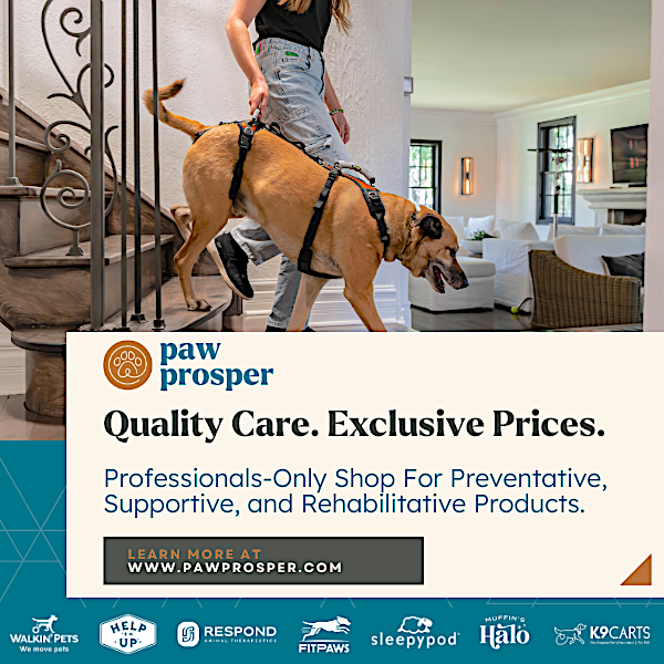 Paw Prosper brands are trusted by veterinarians, universities, and rehab facilities alike. Whether you are looking to train, rehabilitate, or help your patients age gracefully, our brands, Walkin’ Pets, Help 'Em Up, Respond Systems, FitPaws, Muffin's Halo, Sleepypod, and K9Carts, offer effective, innovative, and proven solutions.