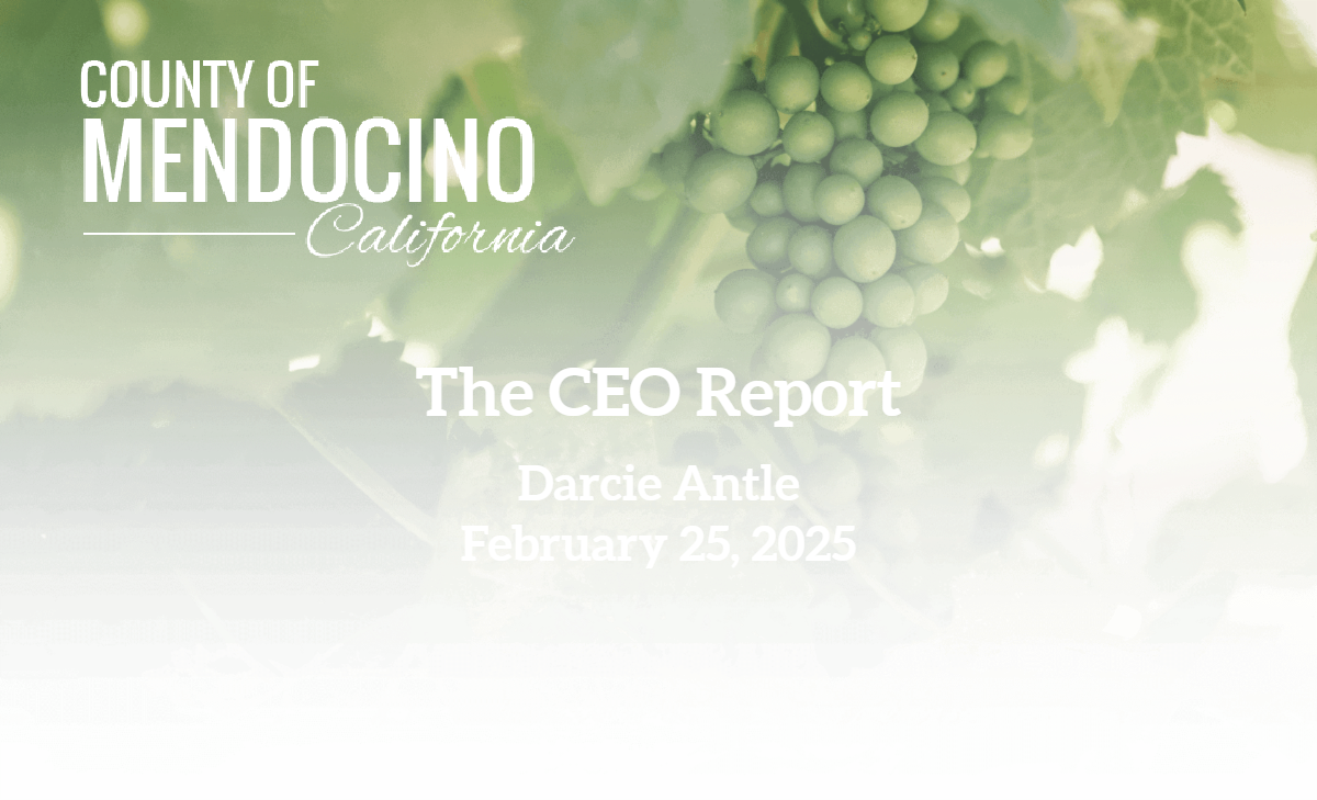 In May 2022, the Mendocino County Board of Supervisors approved the first five-year strategic plan that will help guide the critical decisions the Board of Supervisors will face over the next five years with the ultimate goal of improving the quality of life for County residents. Departmental reporting will align with the strategic plan.