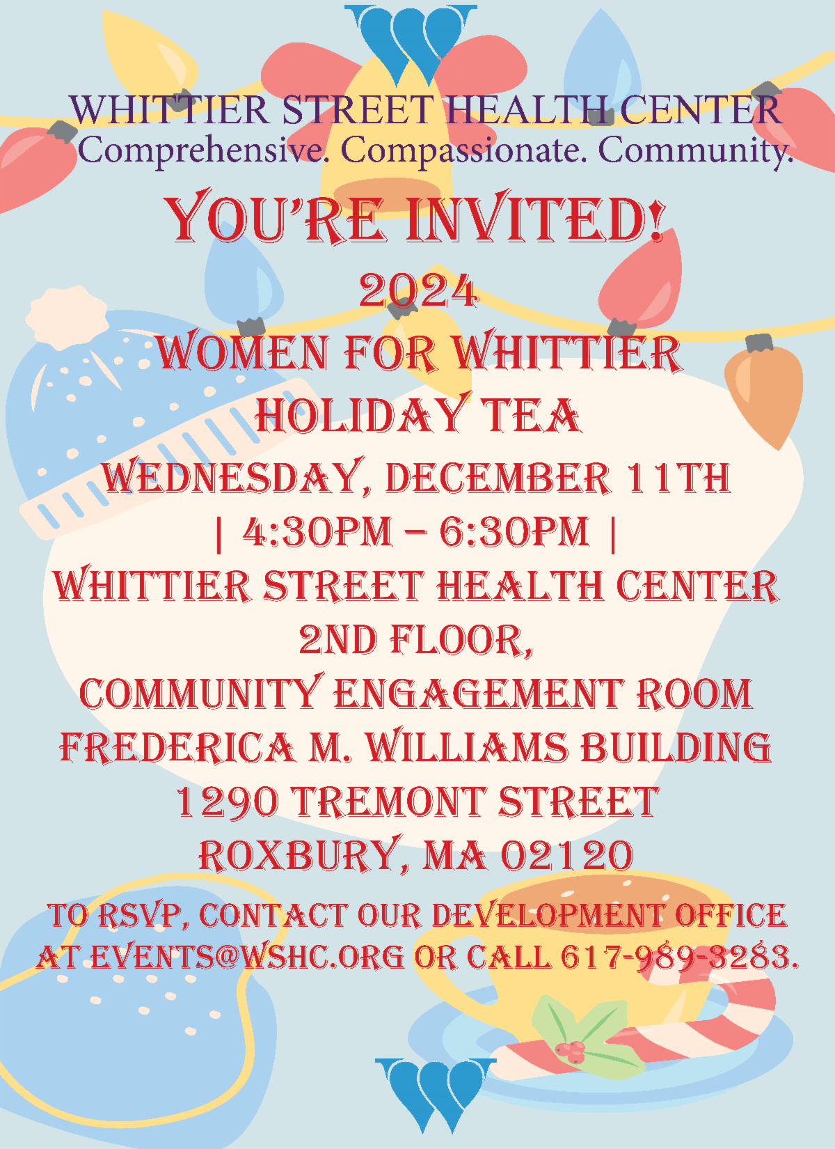 Whittier is looking forward to hosting several community events before our signature holiday fundraiser, the Women for Whittier’s annual Holiday Tea on Wednesday, December 11th. Our annual community Hispanic Heritage Month on October 18th will feature a keynote address from Yuisa Pérez, Chief People Officer, Massachusetts Convention Center Authority, on the theme ‘Pioneers of Change: Shaping the Future Together’. Whittier will also hold a Breast Cancer Awareness Month Celebration on October 24th.