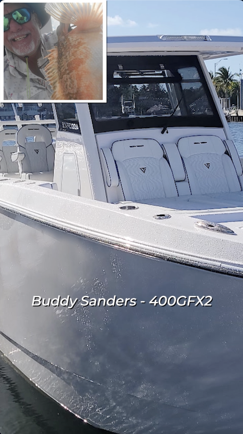 A big Twin Vee welcome to Buddy Sanders! Buddy has just upgraded his boating experience in a big way, moving from a 30-foot boat to the awesome power and space of our 400 GFX2. We're thrilled to have Buddy join the Twin Vee community in our flagship boat model.