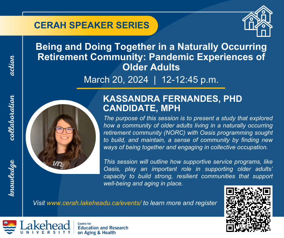 CERAH Speaker Series presents "Being and Doing Together in a Naturally Occurring Retirement Community: Pandemic Experiences of Older Adults" with Kassandra Fernandes