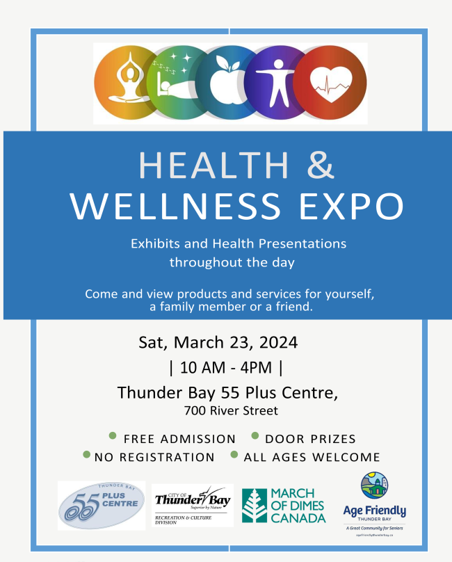 Join us Saturday March 23rd from 10am - 4pm at the 55 Plus Centre! Come and see the various senior health & wellness services, products, presentations and exhibits!