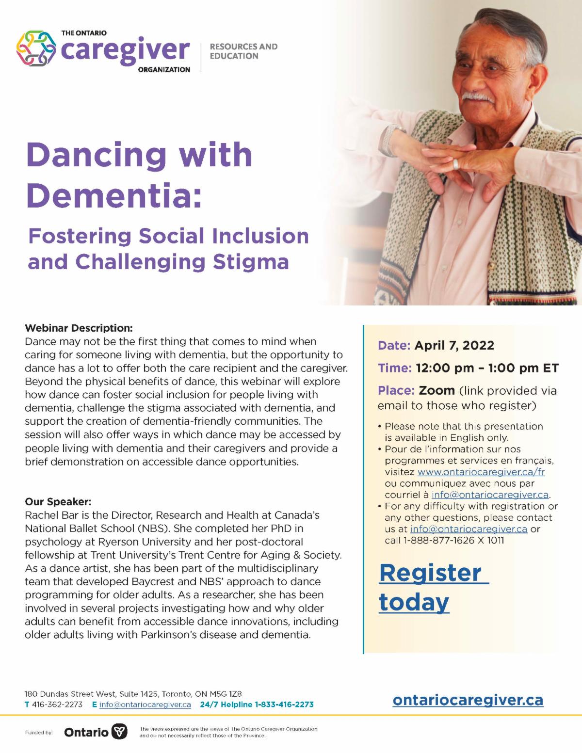The Ontario Caregiver Coalition has developed a variety of informative webinars on Caregiver Skills and Development.