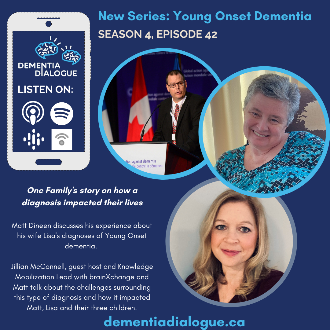 Dementia Dialogue has launched a new series on Young Onset Dementia. This series begins with a conversation between Matt Dineen, a father of three and husband from Ottawa, Ontario, and Jillian McConnell, guest host and Knowledge Mobilization lead with brainXchange. Nine years ago, Matt's wife Lisa was diagnosed with Behavioural variant Fronto-temporal dementia (bvFTD) at the age of 43.