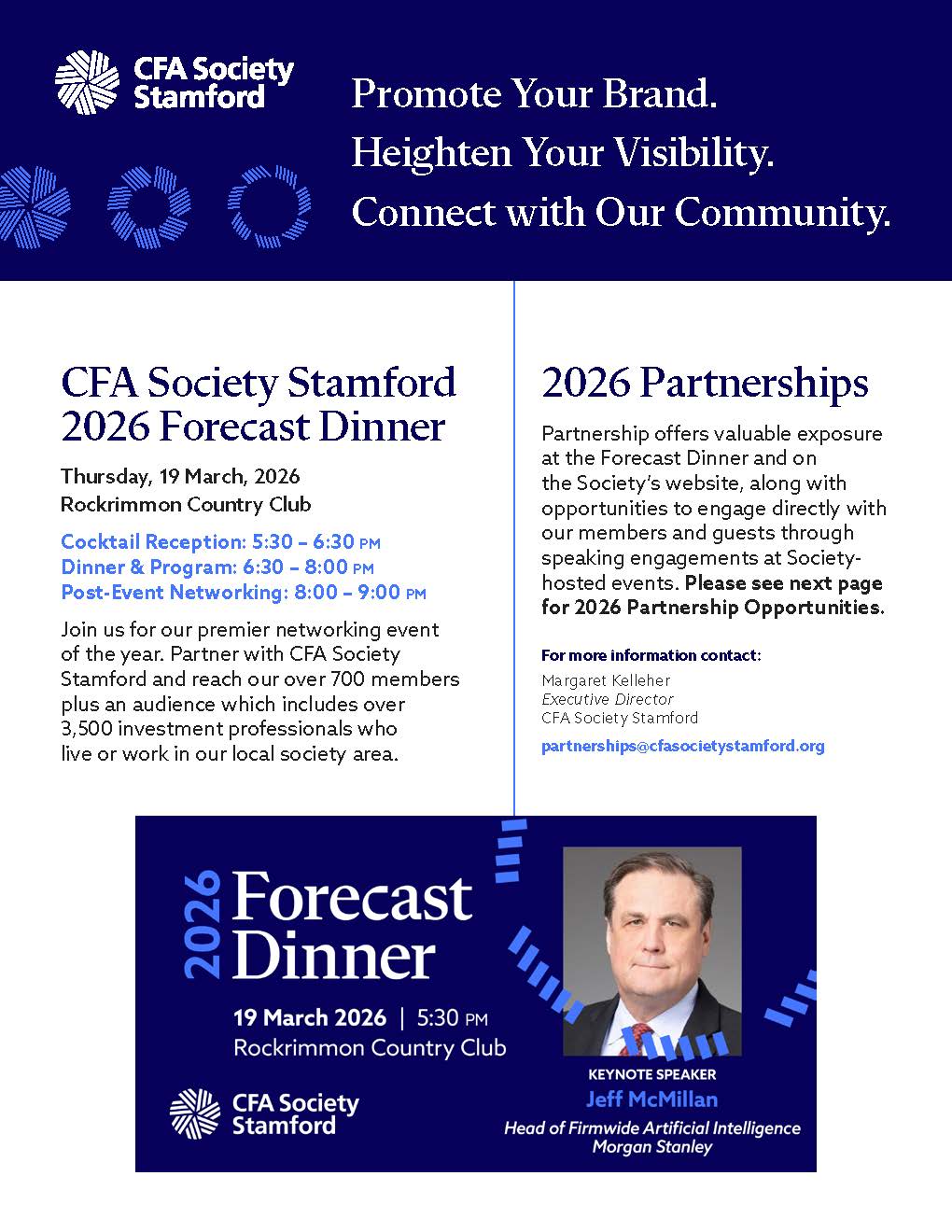 Partnering with CFA Society Stamford puts your brand at center stage—at our premier Forecast Dinner, across our website, and throughout our year-round programming.