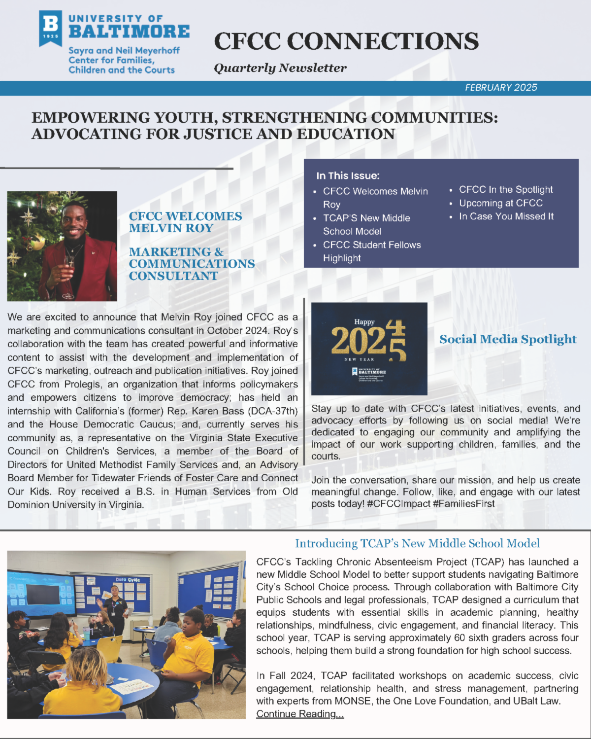 University of Baltimore School of Law Sayra and Neil Meyerhoff Center for Families, Children and the Courts (CFCC) | 1420 N. Charles Street | Baltimore, MD 21201 US