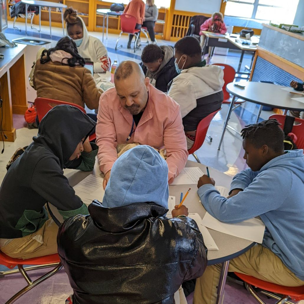 TCP Mentor Arion Alston tutors a group of sixth grade students at Franklin Square Elementary/Middle School.