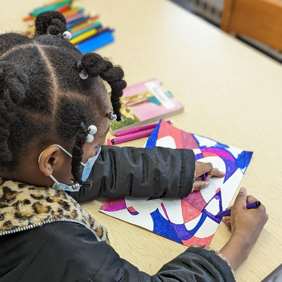 A fourth grade student at Furley Elementary School works on her submission for the CFCC Art Contest.