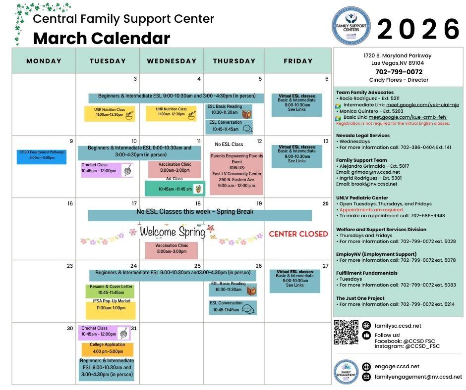 Join us for an empowering and informative morning of free workshops led by fellow parents! Sessions will include making homemade pinatas, healthy living, soap making, and more. Scan the QR code to register, and seize this opportunity to learn, grow, and connect with other parents! Call 702-799-0303 for more information.