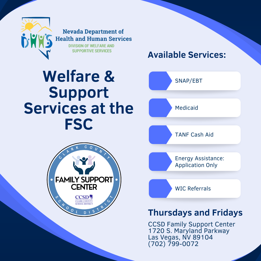 Are you interested in SNAP, EBT, TANF, WIC, Medicaid, or energy bill assistance? Come to the Central Family Support Center on Thursdays or Fridays to meet with a rep from the Nevada Department of Health and Human Services! They can help you navigate the application process and help you apply. No appointment is necessary--just stop in!