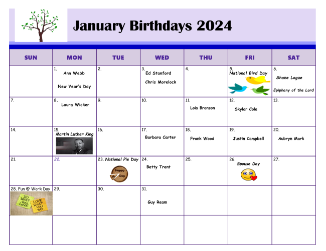 The church office will be closed on Monday, January 1 in honor of the New Year's Day. Regular office hours will resume on Tuesday, January 2.