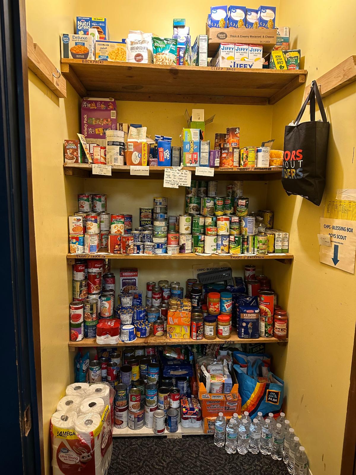 Special thanks is offered for the generosity of Scout Troop 48 for their recent continuous campfire food drive. We are grateful for their dedicated service to ensure help is available to those in need. Just look at all this food ready to go out to the Blessing Box! Please speak with Brenda Clark or another member of the Missions Committee if you have questions about the blessing box or how to supported this needed ministry in our community.