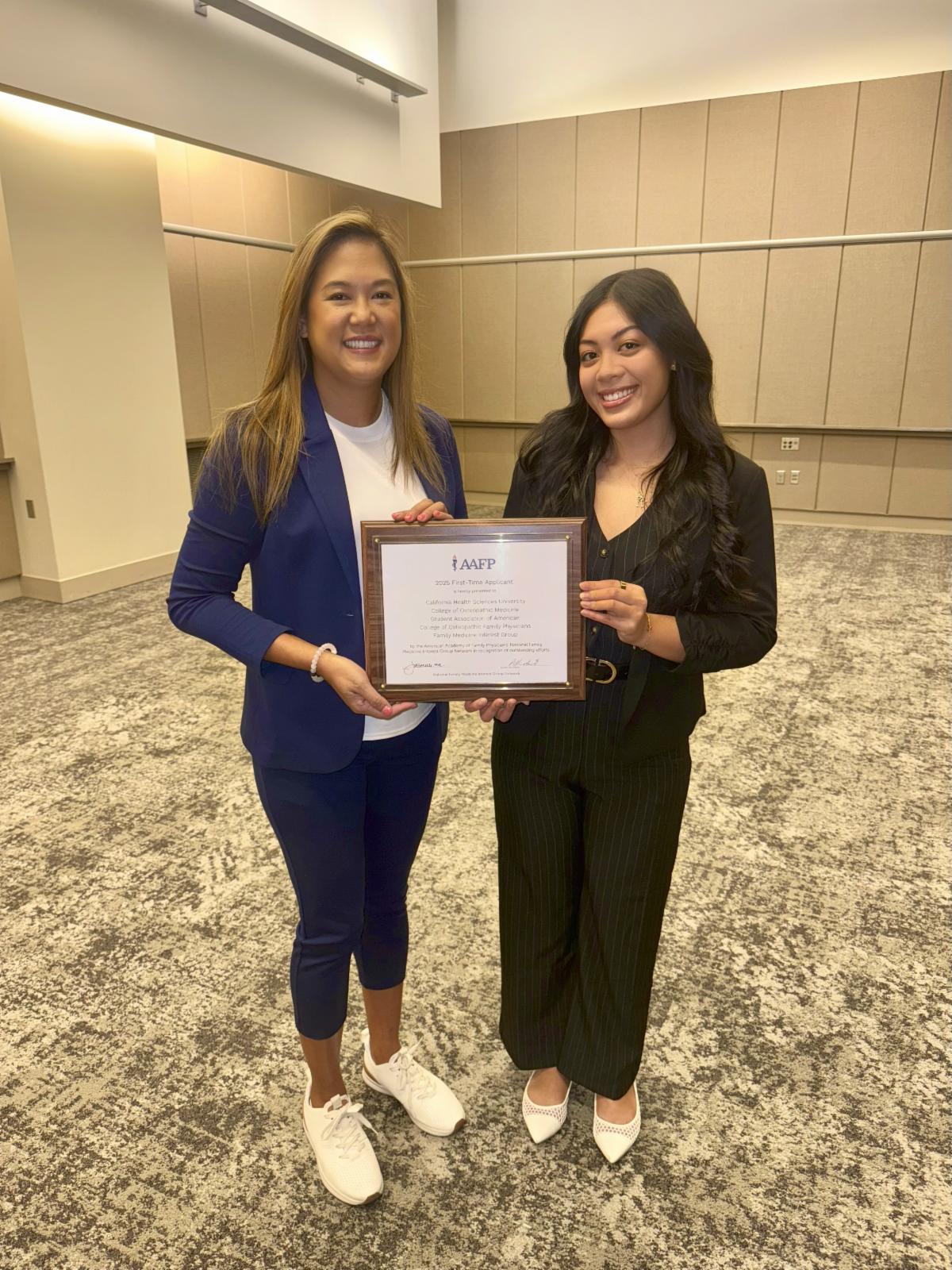 Third-year medical student Valerie Domingo, 24-25 SAACOFP President, and the advisor, Carleen de Leon, MD, were in attendance to accept the award. Congratulations!