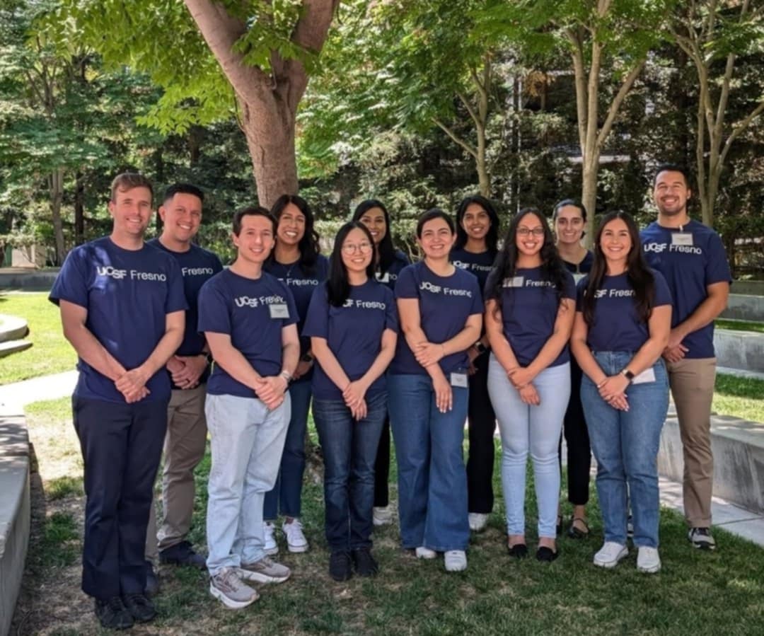 CHSU Class of 2025 alumni Natalie Peña-Brockett, DO; Sameera Malepati, DO; and Joshua Valenzuela, DO with their UCSF-Fresno Family Medicine residency class on the last day of their orientation.