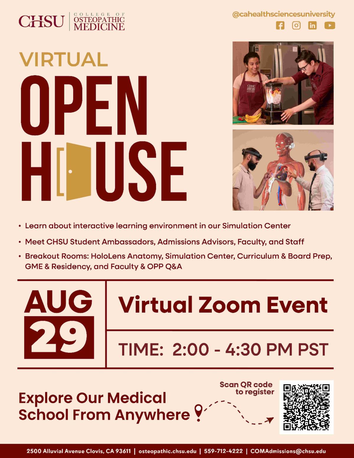Guests can enjoy a virtual experience and explore what the CHSU-COM medical school is all about!