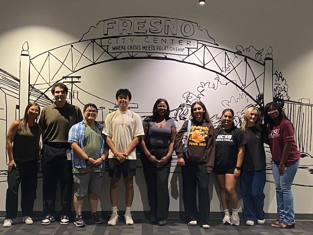First-year medical students Elijah Sepulveda, Ryan Cometa, Kendall Fischer, Crystal Hammond, Harkiran Bhasin, Pehr Williamson, and Diya Bhandari attended the drop-off at Fresno Mission.
