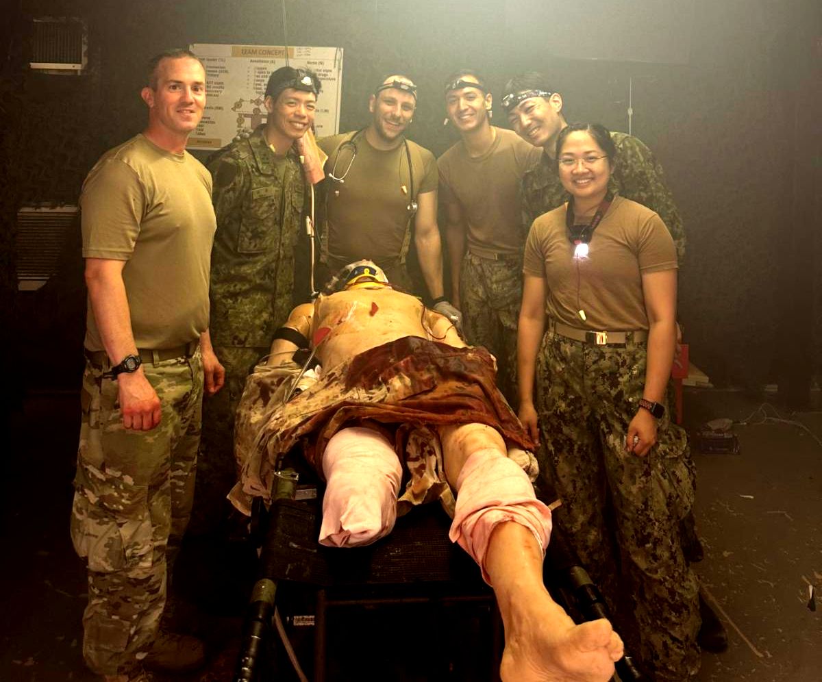 CHSU alum Michelle Tan, DO (2024) at her C4 training. This is a combat casualty care course at Camp Bullis that includes different military branches and medical specialties in conjunction with other international allies, all working together to tackle massive casualty and trauma simulations.