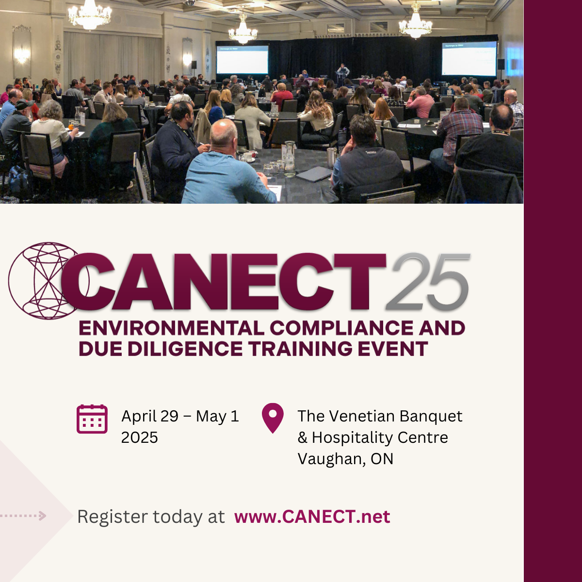 CANECT25 is right around the corner - taking place April29 – May 1, 2025 in Vaughn, ON. The event is a chance to keep up-to-date with new environmental regulations and requirements, connect with expert speakers, prove your organization’s due diligence, earn Continuing Professional Development hours, and expand your awareness and network.