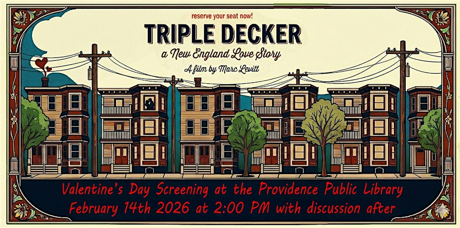 TRIPLE DECKER A NEW ENGLAND LOVE STORY, which was directed by Marc Levitt and edited by CID filmmaker DAVID WELLS, will be having a free screening on Saturday, February 14th at Providence Public Library.