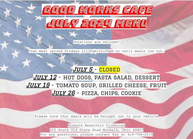 We'll be sending out a 1-call to remind everyone that CLI's regular programs will be closed this Thursday & Friday for the Indepence Day holiday. Please let us know if you do NOT recieve this call so that we can check to make sure you are on our call list. There will be no Good Works Cafe this Friday because of the holiday.
