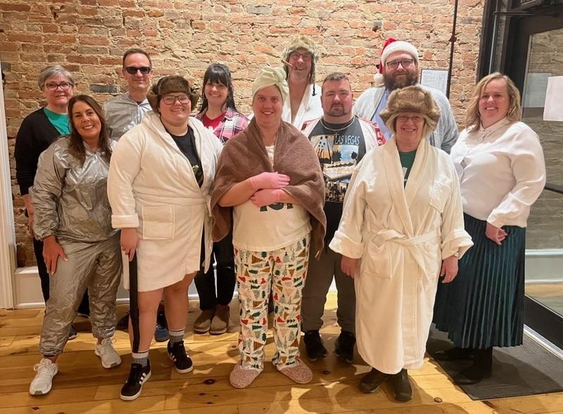 CLI & Firelands Local LLC held our staff Christmas (Vacation) Party last night . We were missing 4 people this year due to other engagements, but this picture (with all 3 Cousin Eddies) really drives home how small our team is these days. Pre-COVID CLI's staff workforce was 36 people, give or take 2. We haven't been more than 20 since & currently we're at 17. The upside is that we are an extremely strong, coordinated team. The downside is that we'd really like to expand to serve more people and do more to meet the needs that we can see-- specifically around supporting people in community jobs and doing more to help young adults transition out of high school to the adult world. One of the exciting things about the DD field right now is that I think that there is finally a DSP career path in which young people can learn and advance. Now we just have to encourage them to step through the front door!