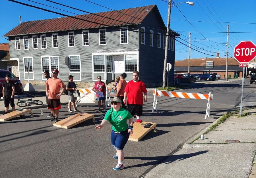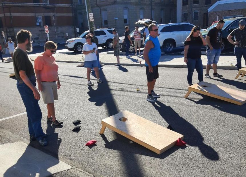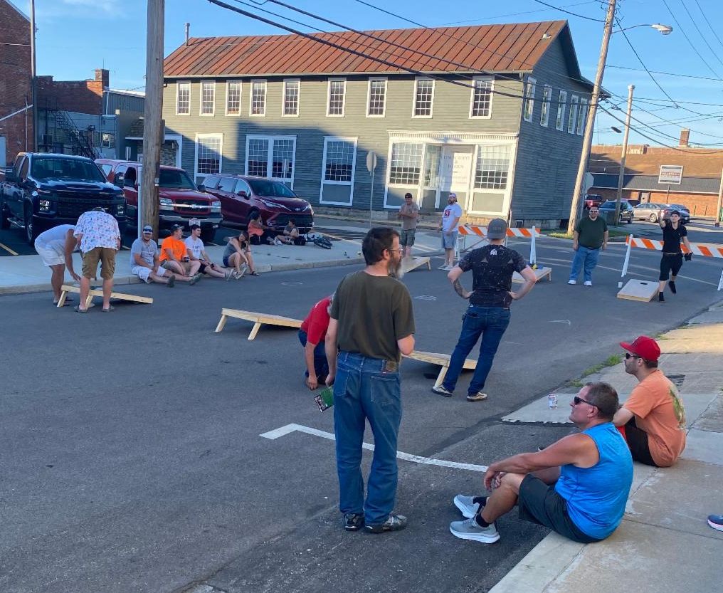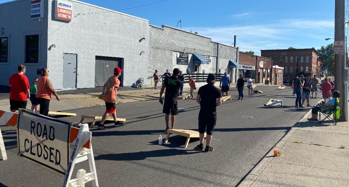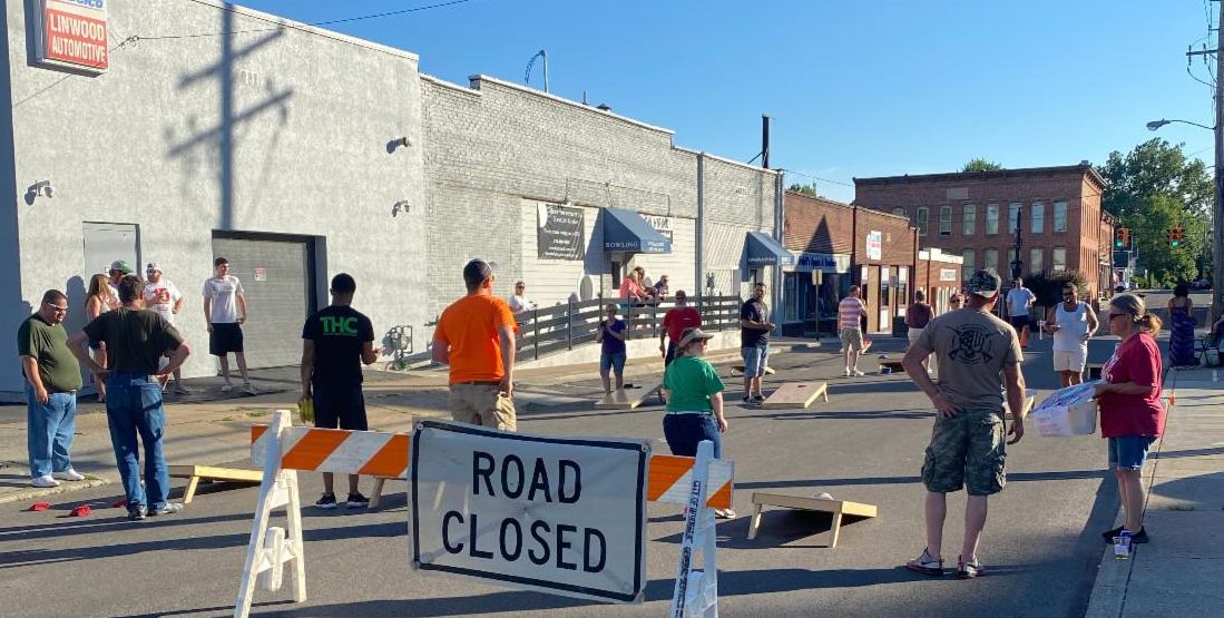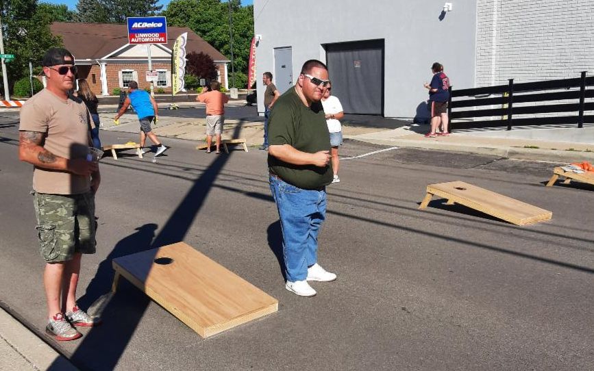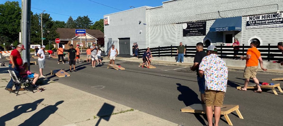 CLI held our first cornhole tournament of this summer's 4-match series last Friday evening. We usually hold this at 38 West Seminary, but the City of Norwalk let us close down the block of Seminary in front of Kenilee Lanes-- which was pretty awesome. The timing was good too as construction of the new splash pad behind Suhr Park started this week. I don't think that they'll let us close the street again, so next month's tournament will be back at 38 West Seminary, so we'll have to sort out exactly where we put the boards as our usual court space will be a lot wetter. Turnout was decent for the first match of the season-- 12 teams, which meant that the payout for the winners was $240! Once we get up to our later season average of 25+ teams, each tournament winners will get more than $500. It's worth coming out. Of course Mark (who wins everything apparently won the $50 scratch-off board).