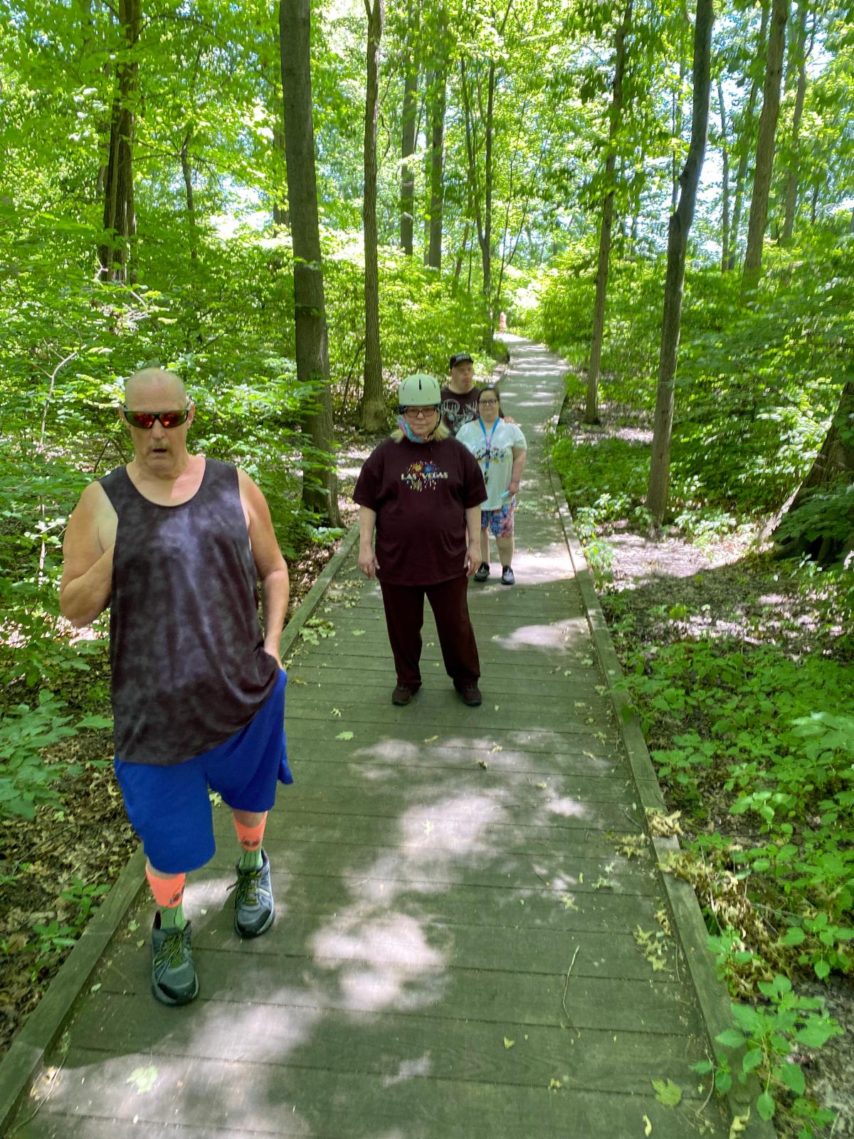 Sometimes cooling off on a hot day is as easy as a shady walk in the wood-- like these guys on the Storybook Trail in Findlay State Park in Wellington.