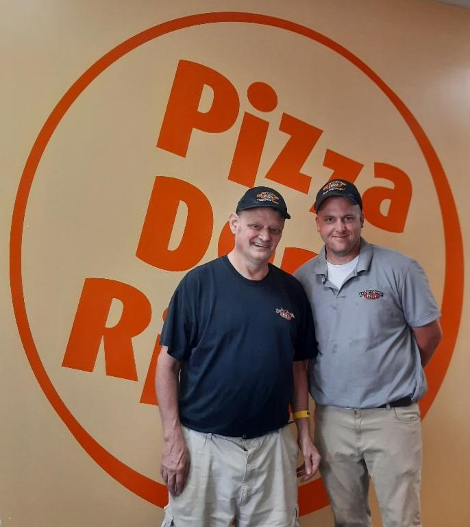 John has had a long pizza career, first at Pizza Hut, then recruited by Ken, his former manager at East of Chicago. Ken has just retired, here's John with his new boss, Brian.