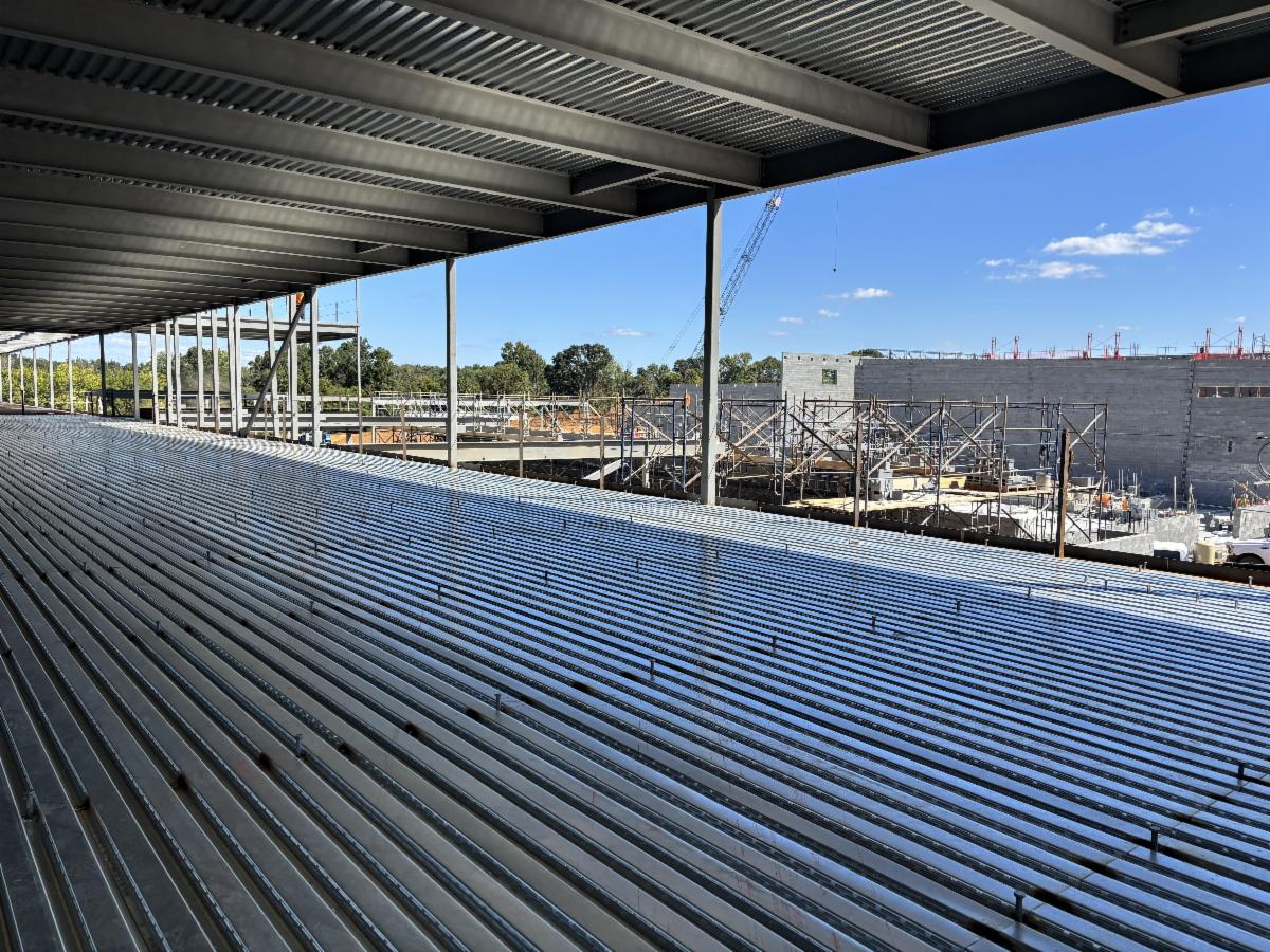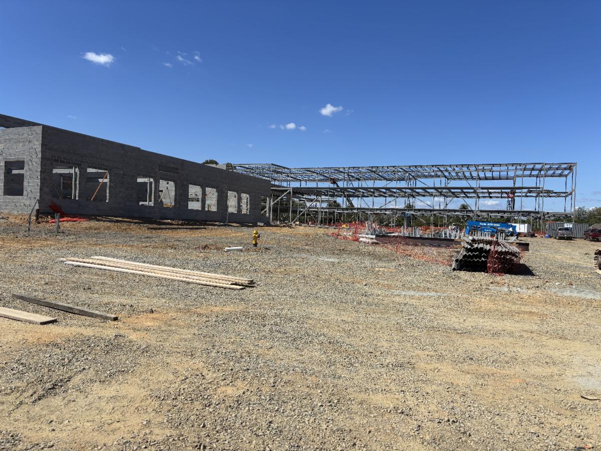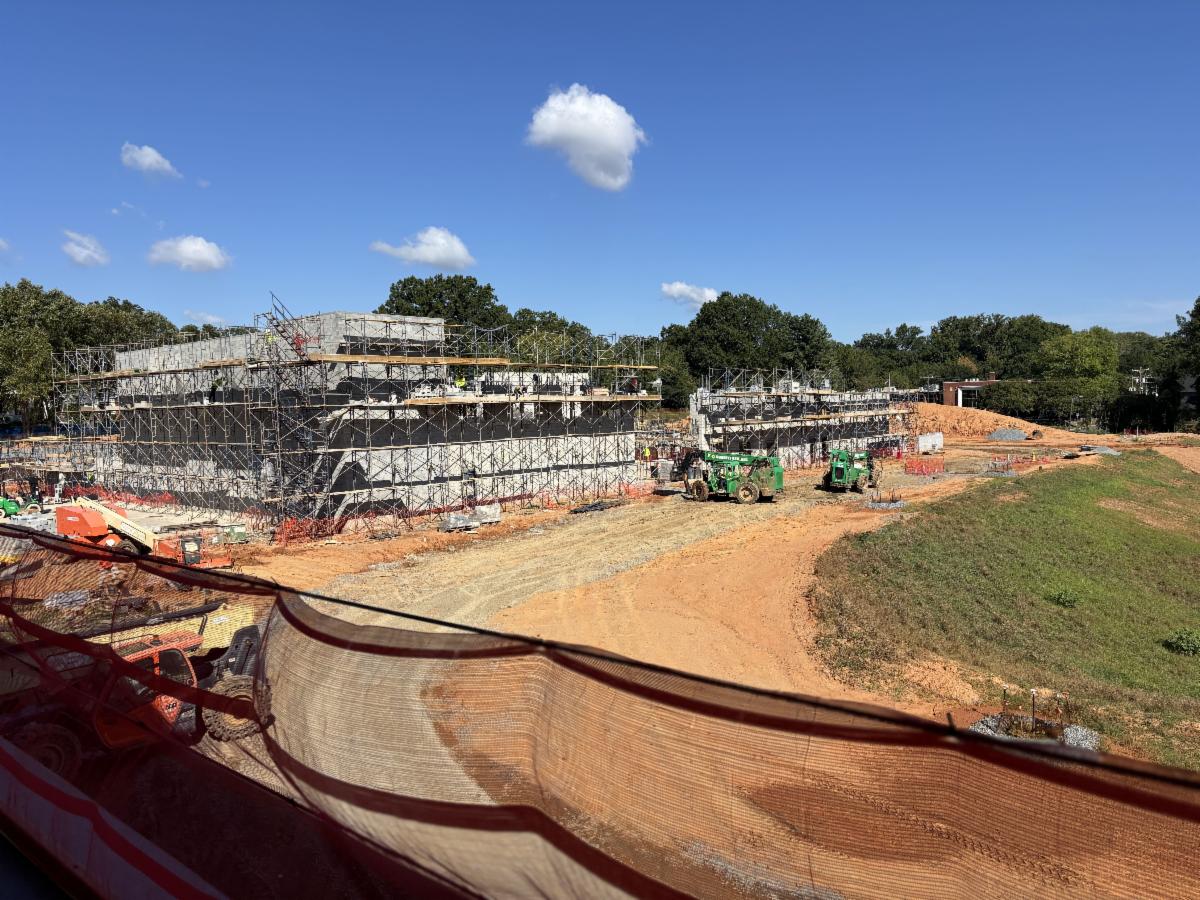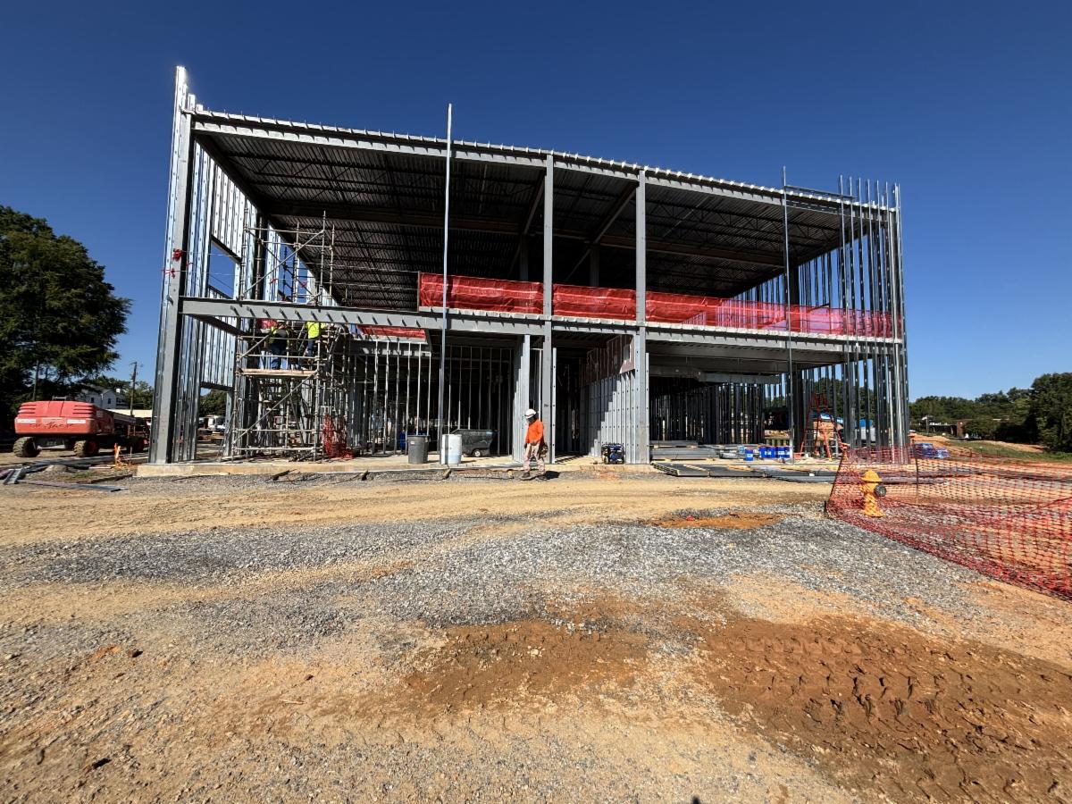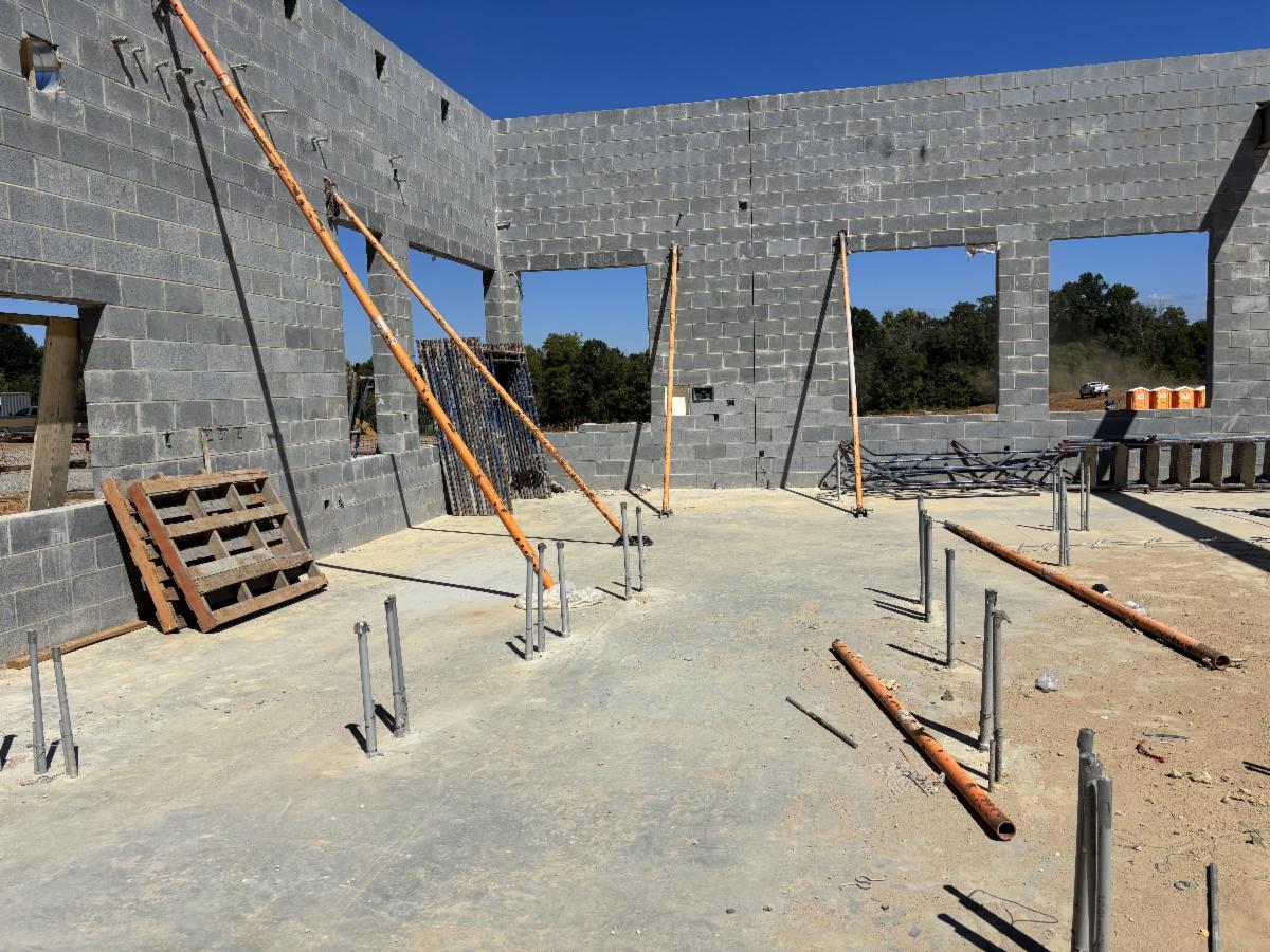 Construction is moving forward at Middle School #1 South, 5400 Camp Verde Lane in Charlotte. Structural steel for the three-story classroom wing is complete, and preparations are underway for the first elevated slab. Concrete masonry unit (CMU) walls are rising, progressing into the cafeteria and administration areas, shaping a modern space that will house 54 new classrooms.The school will serve grades 6-8 and help relieve Community House Middle School, Jay M. Robinson Middle School and Rea Farms STEAM Academy (K-8). The project is on track to open for the 2026-27 school year, thanks to the 2023 bond.
