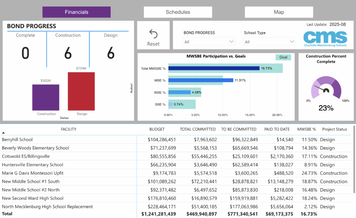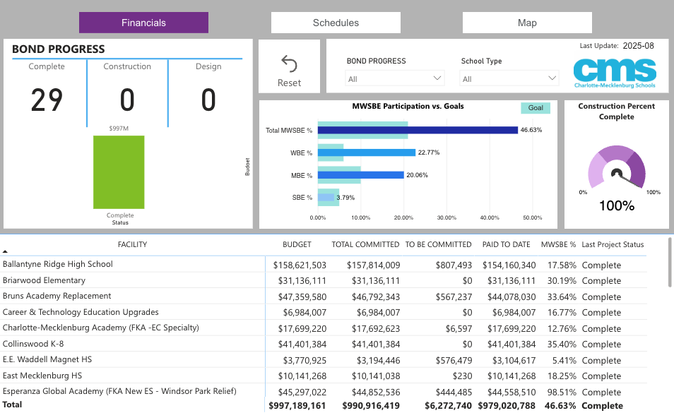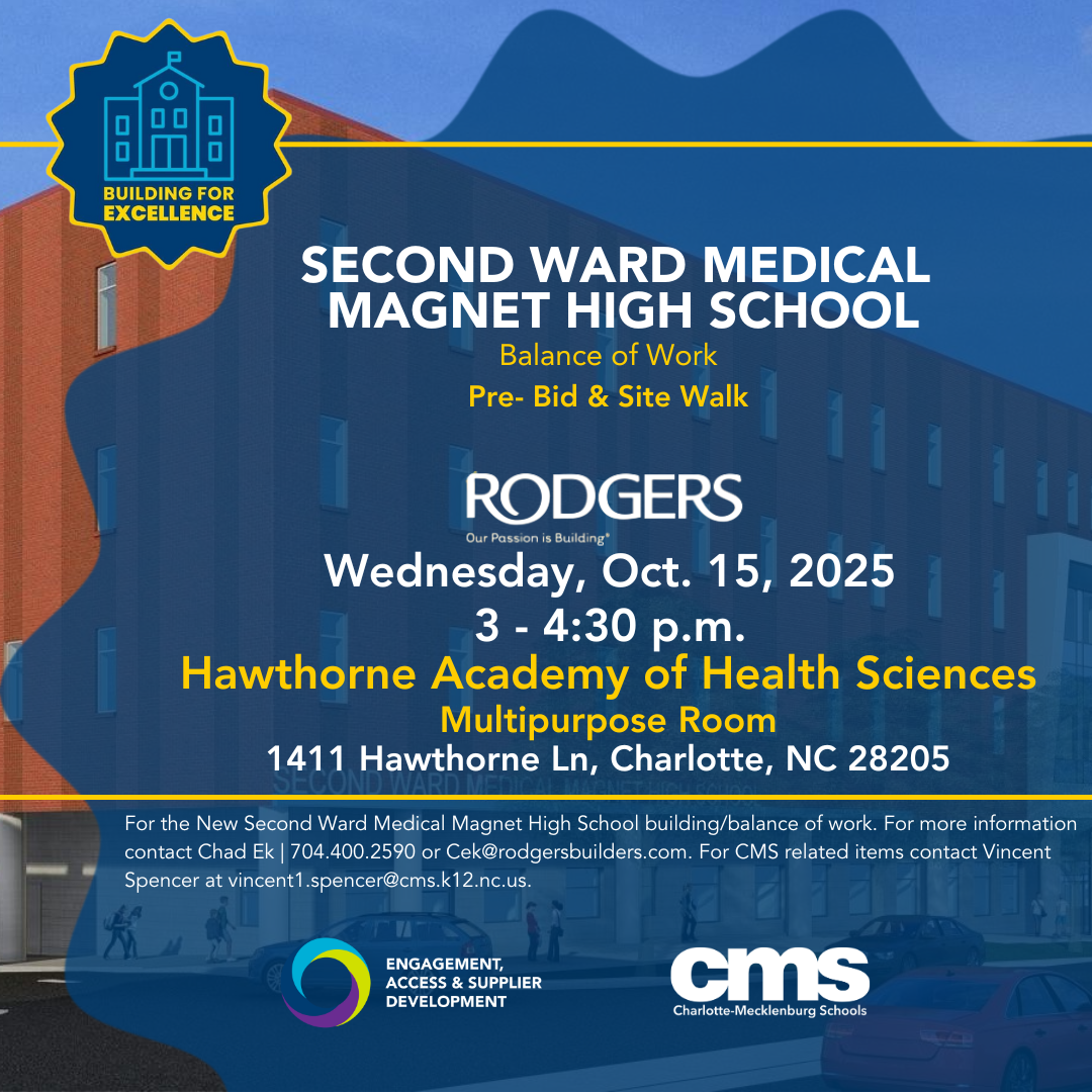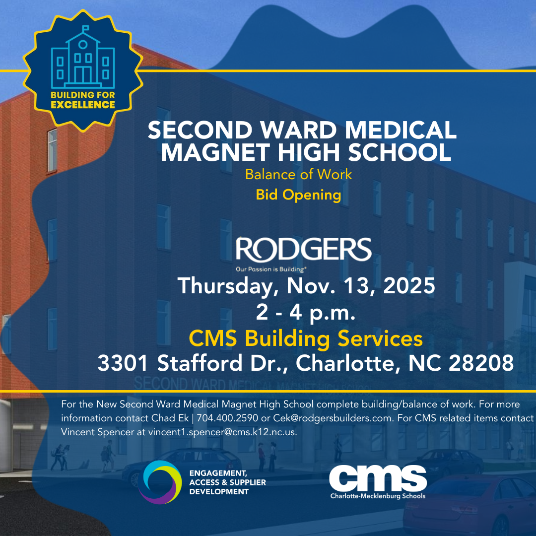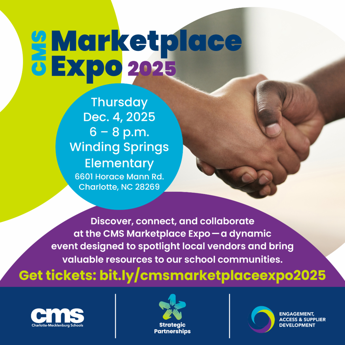 | | Join us at the CMS Marketplace Expo, where local businesses and school communities will come together to create meaningful partnerships! Vendors can showcase products and services directly to PTAs, PTOs and Booster Clubs, while schools discover new fundraising ideas and resources to support student success. Vendor spots are limited — become a Table Host for $250 (small businesses can share a table!) or attend for free as a school representative. Don’t miss this opportunity to Engage, Empower, Impact and Elevate our community. Get tickets: bit.ly/cmsmarketplaceexpo2025. | | Explore the CMS Bond Construction website! Stay informed on Charlotte-Mecklenburg Schools bond projects, including project updates, reports, outreach events, procurement opportunities and MWSBE resources. | |