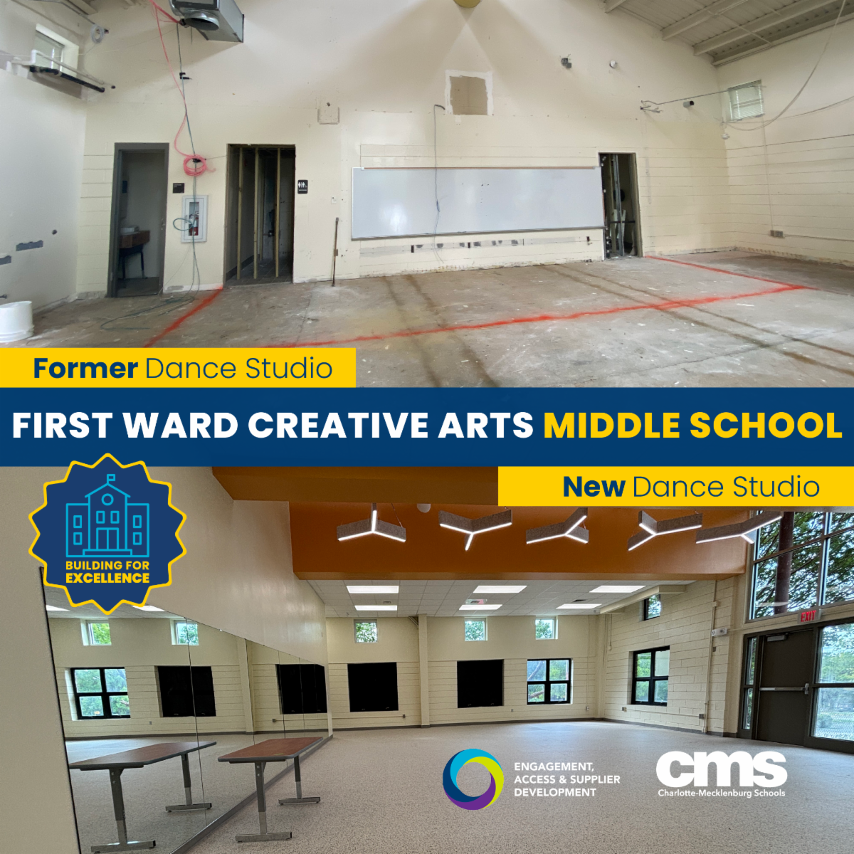 First Ward Creative Arts Academy has been transformed for 2025-26.The campus has been transformed into a full-choice magnet school for grades 6-8, featuring fresh paint, new furniture, three science classrooms, a Google Station, renovated main office and brand-new dance and music studios. Carpet has been removed, sinks raised to accommodate older students, and more upgrades are on the way with Phase 2 this fall — adding renovated classrooms and an updated theatrical stage. Phase 3 next summer, which will bring a redesigned media center, cafeteria and more.