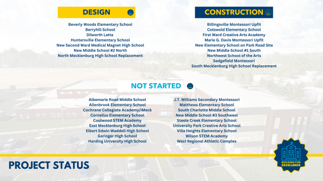 The $2.5 billion bond referendum funds 30 high-priority projects focused on providing significant benefits for students and schools. These projects will improve educational environments, offer more academic options, alleviate overcrowding, and renovate and replace aging CMS facilities. | | Students and staff are filled with pride and excitement as they see their school transform into brighter, better learning environments- and this is why we do what we do. | | Principal Heather Haas welcomes over 700 students back to Billingsville Cotswold Elementary | | Principal Heather Haas welcomes over 700 students back to the combined school at Billingsville Cotswold Elementary! Kindergarten through fifth grade students are starting the year at Billingsville while the Cotswold campus is being rebuilt; it is scheduled for completion in 2027. Upon its completion, the old Billingsville Cotswold will move into the new Cotswold building, and Chantilly Montessori will make the renovated Billingsville campus its new home. | Back-to-School at Sedgefield | New gardens and campus upgrades 2025-26 | | Principal Jennifer Moore shared how excited families are about the fresh upgrades made possible by the 2023 Bond: beautiful new memorial and peace gardens, vibrant greenery throughout the campus, a secure vestibule with new storefronts and brand-new exterior classroom doors. Approximately 500 students from Pre-K through sixth grade now enjoy a safer, brighter place to learn and grow! | | | | | Bruns Avenue Elementary welcomes students back with a new playground | 2025-26 school year kickoff | There were first- day vibes at Bruns Avenue Elementary where kindergarten through fifth-grade students enjoyed their brand-new playground. Principal Nicki Dudley shared that the start of 2025-26 has been smooth and fun. Here’s to an excellent year for the 570 scholars who call Bruns Avenue home, thanks to the 2017 bond! | | |