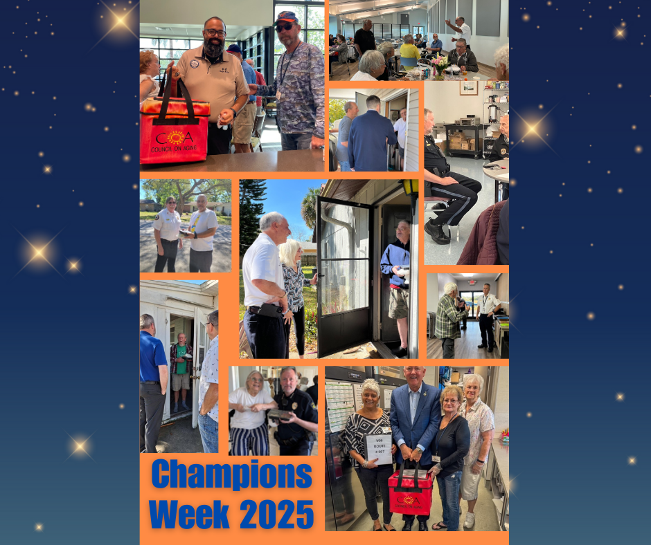 What a week to remember March 17-21, as we celebrated "Community Champions Week" with a hearty dose of joy and nourishment! Our local heroes across Volusia County weren't just delivering meals; they were serving up smiles that could light up any room! A huge round of applause goes to Deltona Mayor Santiago Avila, DeLand Mayor Chris Cloudman, DeLand Fire Chief Todd Allen, Deltona Fire Chief Bill Snyder, New Smyrna Beach Mayor Fred Cleveland and Sheriff Mike Chitwood for taking time out of their bustling schedules to connect with our senior clients through our Meals on Wheels Program.