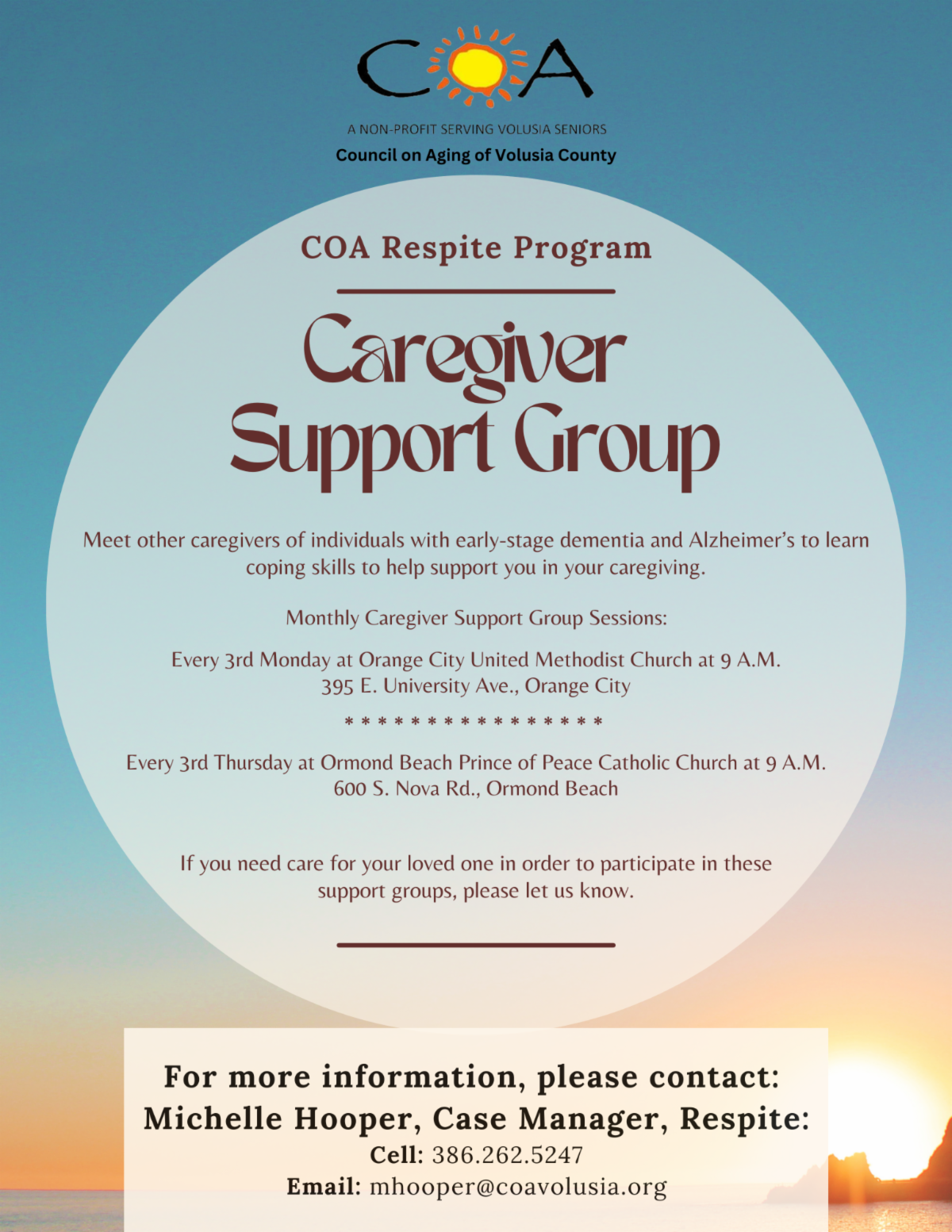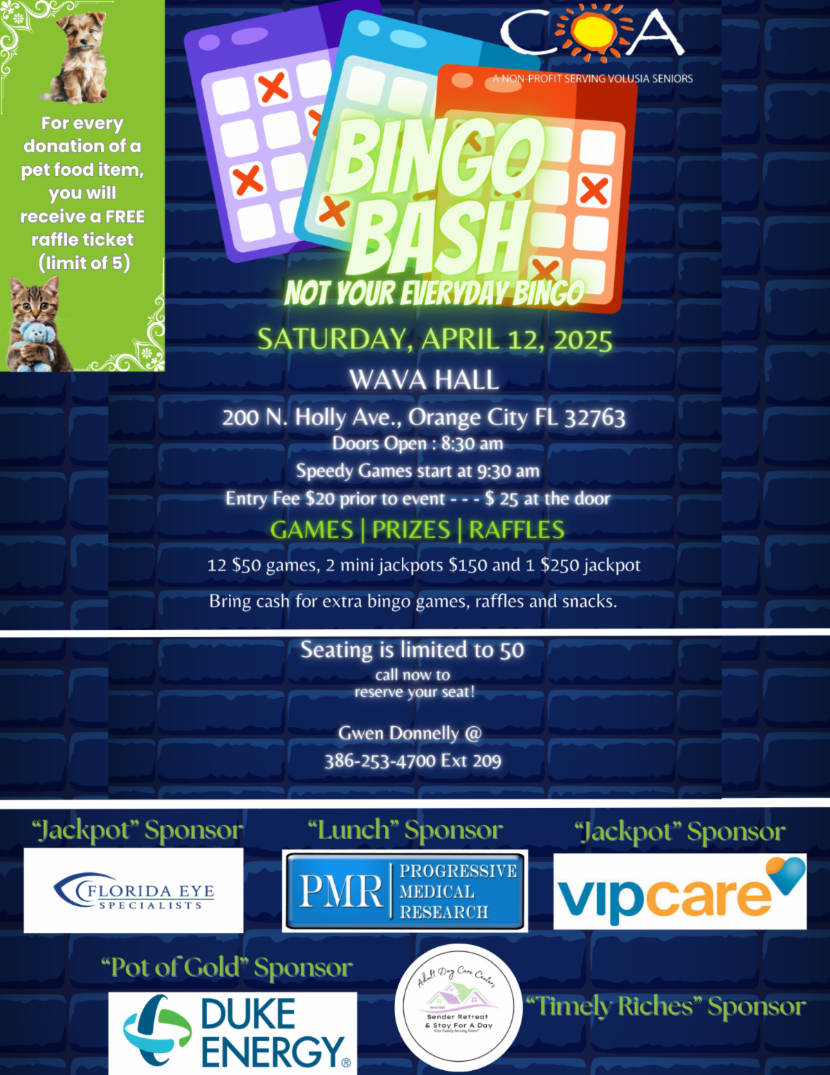 It’s been a busy year thus far. We kicked off the year with two Community Bingo Bashes; one in Ormond Beach and the second one in New Smyrna Beach. Two more Bingo events are planned for the west side of the county, one on April 12 and one on May 3. To stay up to date, be sure to follow us AND like us on Facebook by going to www.facebook.com/COAVOLFL for the latest COA news and events!
